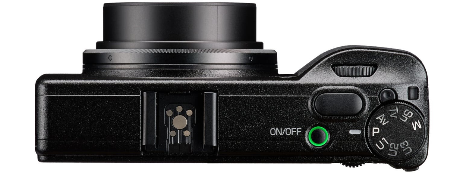 Zmiany nie ominęły też elementów sterujących – niewygodne kółko wokół wielokierunkowego wybieraka, zniknęło, zastąpione klasycznym krzyżakiem. Zamiast niego mamy małe kółko nastaw na górze obok wyświetlacza – w GR III znajdowała się tam dźwigienka Adj. Na kole trybów pracy pojawiło się dodatkowe ustawienie – Sn, czyli Snap Distance Priority, w którym można wstępnie zdefiniować zakres odległości od fotografowanego celu, a aparat automatycznie dobiera parametry tak, by go prawidłowo zarejestrować – miłośnicy fotografii ulicznej z pewnością będą z niego zadowoleni. Program Auto Ex umożliwia błyskawiczne przełączanie między trybami ekspozycji za pomocą kółek sterujących – przednie przełącza w tryb preselekcji przysłony, tylne preselekcji migawki.