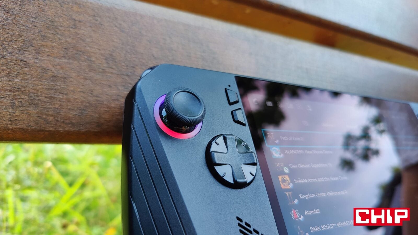 Ciekawie wypada też porównanie ekranu. ASUS przy odświeżaniu ROG Ally nie zdecydował się na OLED-a, bo to wciąż matryca IPS o przekątnej 7 cali, rozdzielczości 1920×1080 i odświeżaniu 120 Hz z obsługą VRR. Choć nie zapewnia takiego kontrastu i głębi czerni jak OLED od Valve, to przynajmniej nadrabia płynnością i ostrością, a to cenne szczególnie w dynamicznych grach. Jasność na poziomie 500 nitów pozwala z kolei komfortowo grać także w jasnym pomieszczeniu, choć na pewno nie w pełnym słońcu, jeśli dany tytuł należy do tych mroczniejszych.