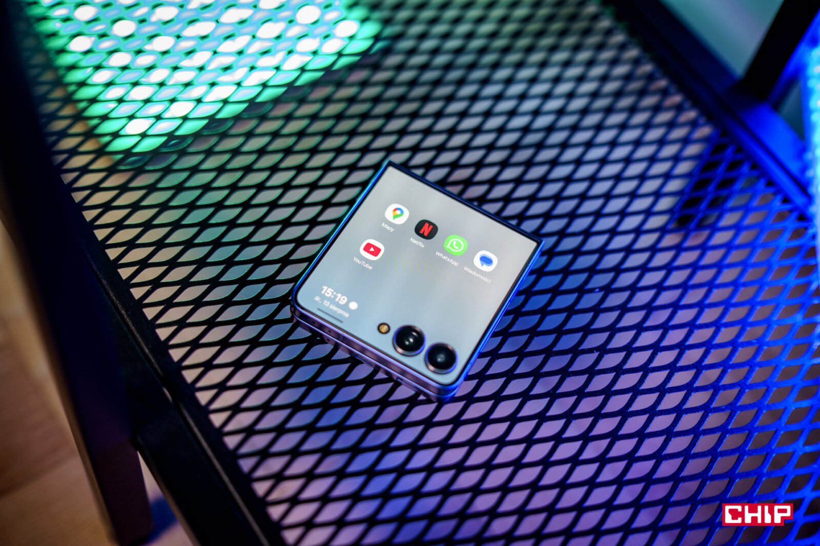 Aplikacji dostępnych natywnie na zewnętrznym ekranie jest dosłownie kilka — Google Maps, Netflix, Wiadomości, YouTube i WhatsApp. To cała lista. Z tym, że wszystkie z nich nadal działają w okienku folderu — jest czarny pasek na całej długości dolnej części ekranu, kończący się na wysokości wyspy na aparaty, więc bez kombinowania, chociaż ekran jest faktycznie większy, to użytkownik nie ma z tego żadnych realnych korzyści. Jeśli chcemy, żeby Infinity FlexWindow był bardziej użyteczny, znów musimy grzebać w ustawieniach.