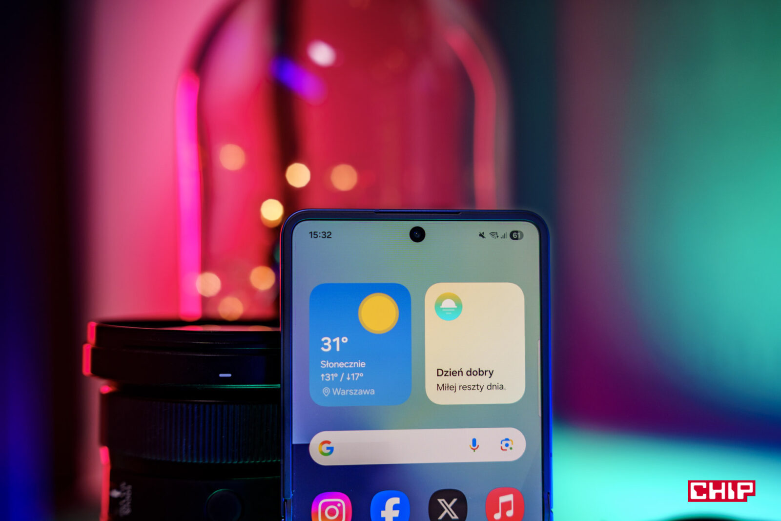 Przechodząc jednak do bardziej optymistycznych kwestii: wewnętrzny ekran to Dynamic AMOLED 2X o przekątnej 6,9 cala i rozdzielczości 1080 x 2520 pikseli, który zachwyca żywymi kolorami i głęboką czernią, również wspierając adaptacyjne odświeżanie 1-120 Hz. Choć zagięcie ekranu jest mniej widoczne niż w poprzednich modelach, wciąż można je wyczuć pod palcem — ale to jest coś na ten moment raczej nie do przeskoczenia. Zmieniły się także proporcje wewnętrznego ekranu Flipa7, co jest świetną informacją — teraz to 21:9, czyli jest o 13% szerszy od poprzednika (68,6 mm szerokości). Dzięki temu korzysta się z niego jak z normalnego smartfona, a nie jest już tak nienaturalnie wąski i wysoki jak wcześniej. To mi doskwierało najbardziej przy poprzednich Foldach, ale cieszy, że Samsung postawił na bardziej naturalne proporcje również we Flipie.