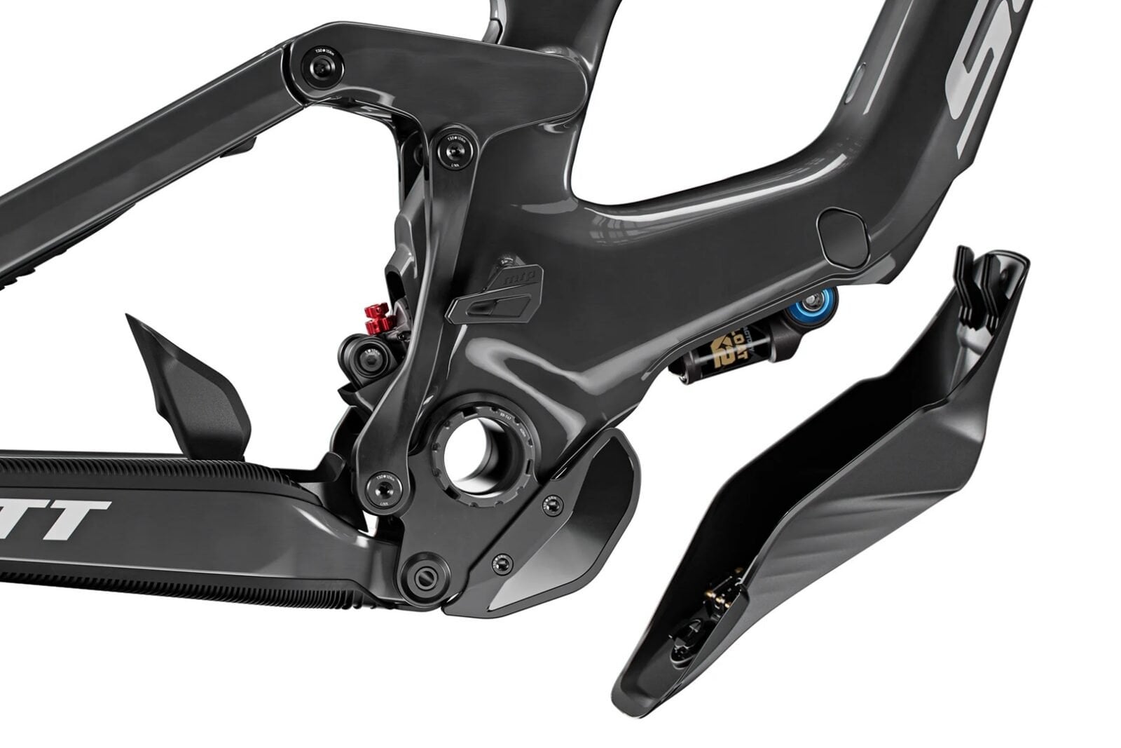 Przedni trójkąt został wykonany z włókna węglowego HMX, podczas gdy tylny trójkąt dostępny jest również w wersji karbonowej HMX lub aluminiowej. Rower dodatkowo został wyposażony w zdejmowaną dolną przednią pokrywę, która nie tylko ułatwia dostęp do amortyzatora, ale także mieści zintegrowane mini-narzędzie Syncros. Cała konstrukcja jest kompatybilna ze wszystkimi amortyzatorami sprężynowymi i powietrznymi, co daje użytkownikom swobodę wyboru preferowanego rozwiązania. W pełni prowadzone wewnętrzne prowadzenie kabli, zintegrowana prowadnica łańcucha MRP i osłona zębatki Scott dopełniają pakiet praktycznych rozwiązań.