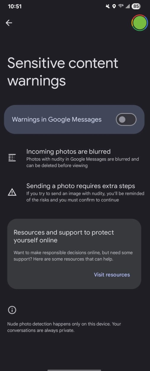 Zadaniem tego narzędzia jest ostrzeganie przed wrażliwą zawartością działa bezpośrednio na urządzeniu, wykorzystując Android System SafetyCore. Cała analiza obrazów odbywa się lokalnie w telefonie, bez przesyłania danych gdziekolwiek. Google podkreśla, że system nie wysyła danych identyfikowalnych ani żadnych sklasyfikowanych treści na swoje serwery. To spora różnica w porównaniu do rozwiązań opartych o chmurę, które często budzą wątpliwości co do prywatności.