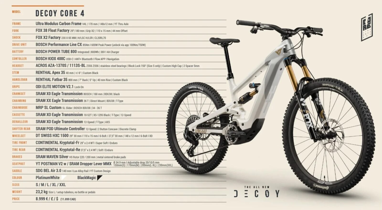 Ewolucja elektrycznych rowerów Decoy trwa od lat, bo pierwsze modele tego typu trafiły na rynek w 2019 roku. Dziś cena za Decoy 2026 wynosi od 5999 funtów do 8999 funtów zależnie od wybranej wersji (od Core 1 do Core 4), a wszelkie różnice wprowadzają się głównie do osprzętu. Waga tych modeli zamyka się z kolei w przedziale 23,2-23,9 kg. Czas więc pokaże, czy modele rzeczywiście będą popularne na tyle, aby uratować markę przed zbyt głębokimi i nieodwracalnymi zmianami.