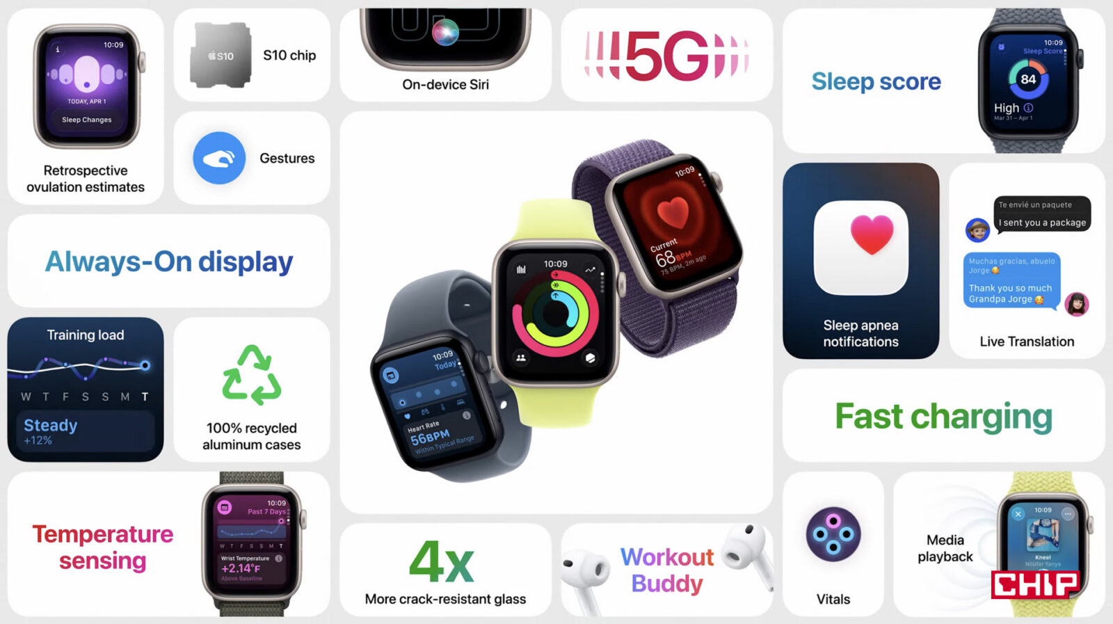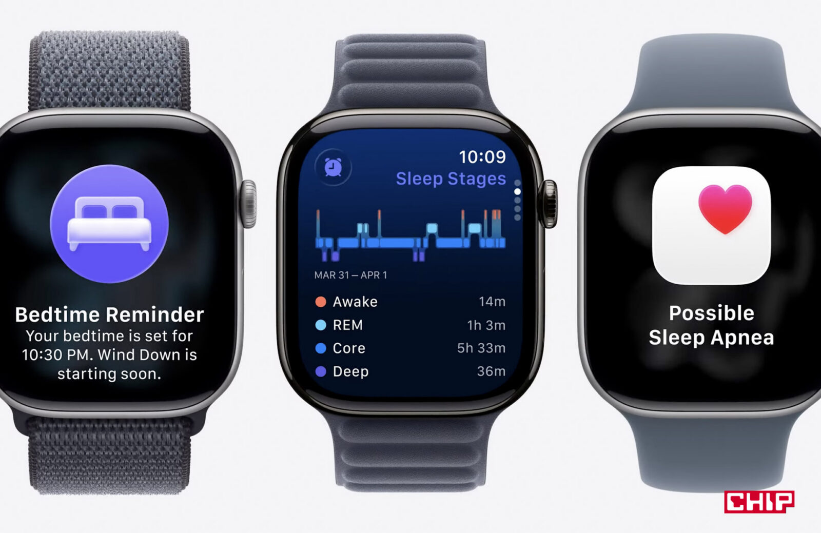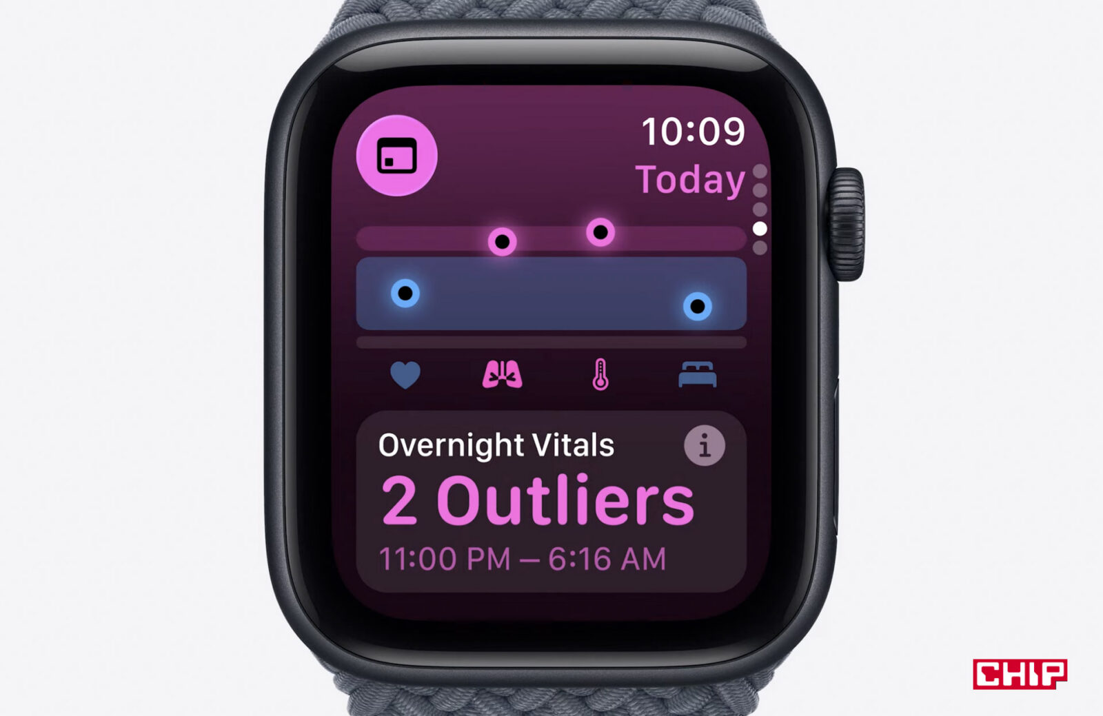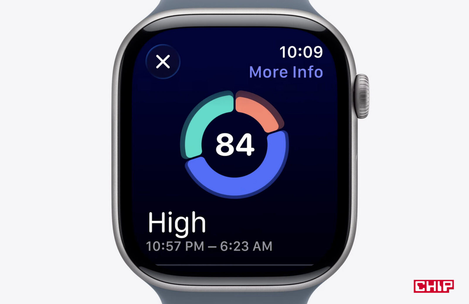 Wśród funkcji zdrowotnych pojawiły się wspomniany już Sleep Score, retrospektywne szacunki owulacji, powiadomienia o bezdechu sennym oraz czujnik temperatury nadgarstka, wzbogacający dane w aplikacji Vitals. Sleep Score, oparty na danych z ponad 5 milionów nocy w badaniu Apple Heart and Movement Study, dostarcza szczegółowych informacji o jakości snu, pomagając nam poprawić nawyki.
