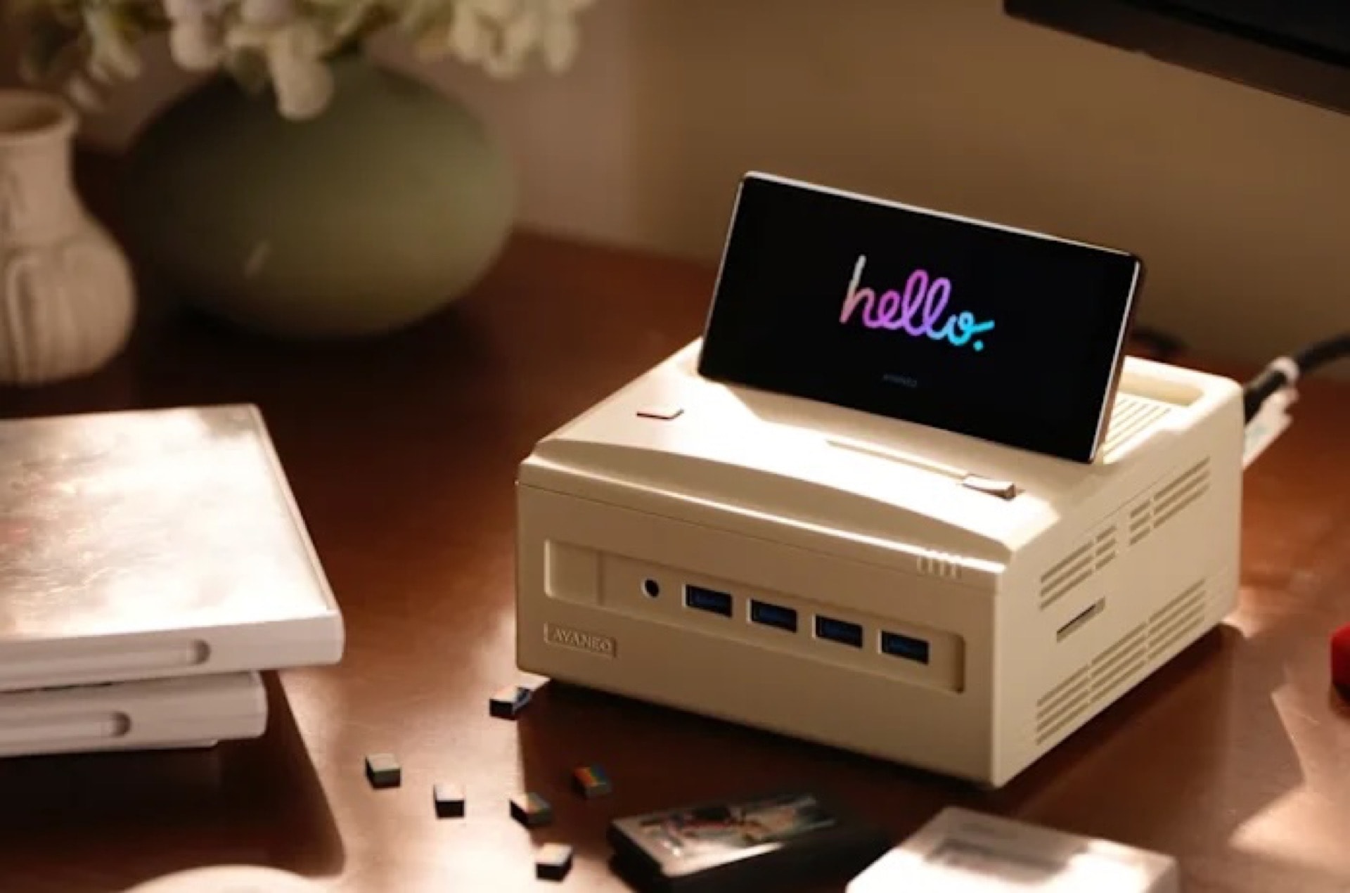 AM01S wyróżnia się unikalnym 4-calowym ekranem dotykowym, który przypomina nieco rozwiązania znane z laptopów – można go składać i regulować według potrzeb. To nie jest kolejne niepotrzebne gadżeciarskie udogodnienie, ale całkiem sensowna próba redefinicji formy mini PC.