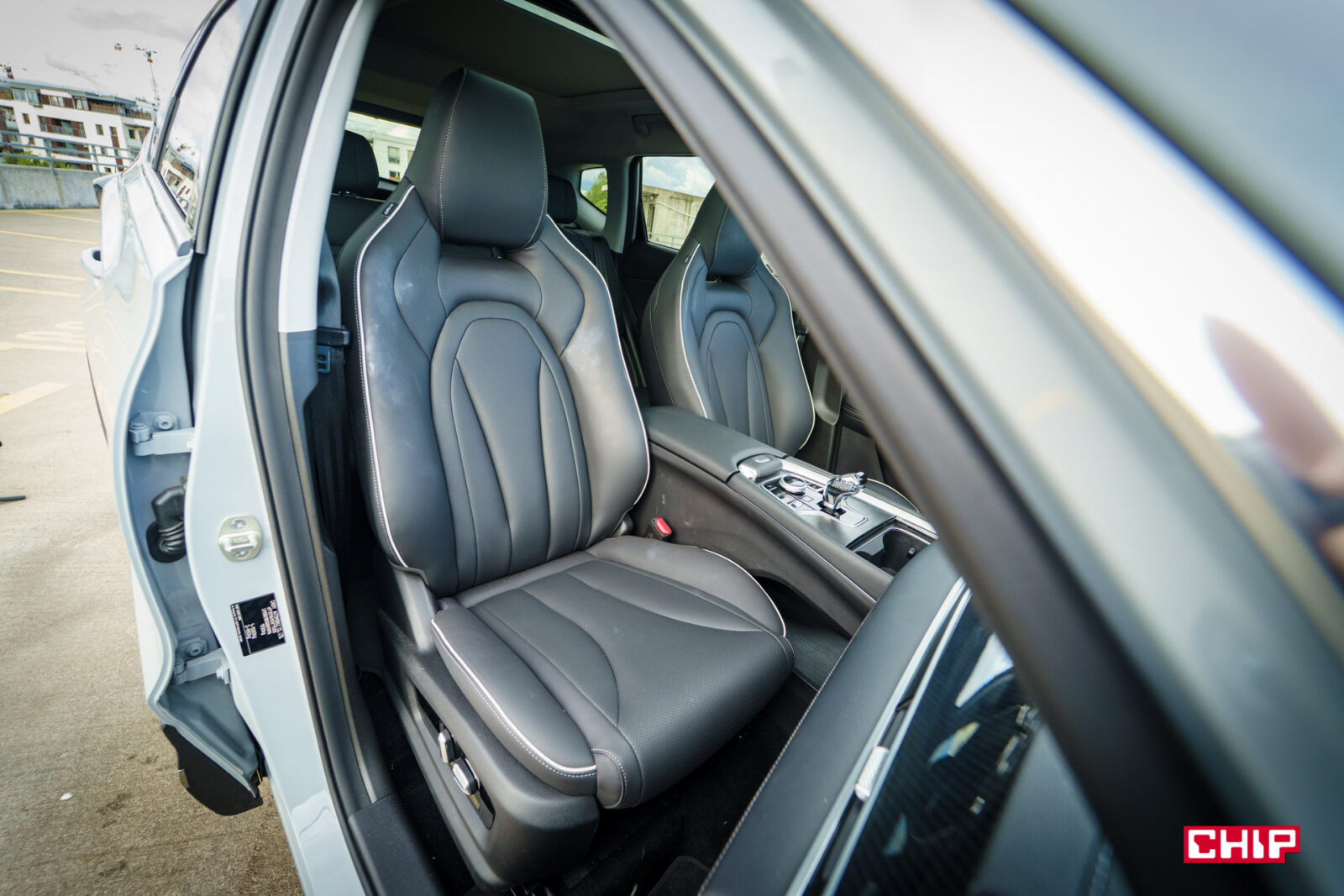 Z plusów jednak zdecydowanie panoramiczny dach o powierzchni 1,1 m², który otwiera się elektrycznie i zamyka w deszczu. Detal, ale zdecydowanie podnosi komfort. Fotele to także prawdziwy atut. W testowanej wersji Prestige przednie są podgrzewane i wentylowane, z elektryczną regulacją w 8 kierunkach.