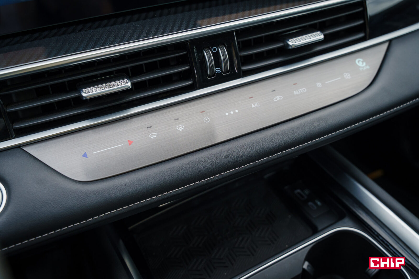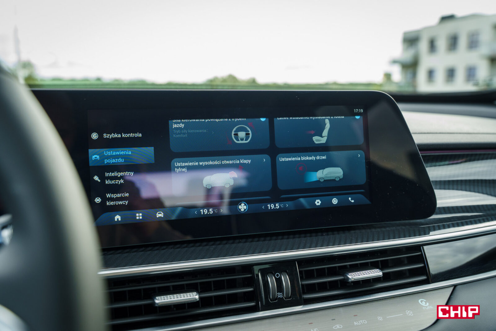 Z innych bajerów, które warto wymienić, to obecność jonizatora powietrza, dbającego o jego jakość w kabinie. Do tego mamy opcję wyboru trzech zapachów w kabinie oraz ich intensywności — i to faktycznie działa! Jeśli ktoś zasmrodzi Wam samochód hot dogiem ze stacji benzynowej, wystarczy oczyścić powietrze i wybrać intensywny zapach lasu, a w parę minut woń parówki zniknie. Niby nic, ale cieszy.