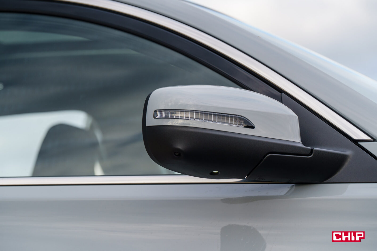 Nieco może szokować fakt, że mamy tutaj tradycyjne klamki, a nie wysuwane czy chowane, jak w innych modelach z grupy Chery czy u wielu innych producentów. Ja całkiem lubię te nowoczesne rozwiązania i myślę, że do całości by to pasowało — ale nie przykładam do tego na tyle dużej uwagi, żebym też z tego powodu narzekał. Z małych rzeczy, obramowanie przy słupku B w Tiggo 7 jest błyszczące, kiedy w Tiggo 8 matowe. Nie wiem, z czego ta różnica wynika, ale zdecydowanie lepsze pod kątem użytkowym jest rozwiązanie zastosowane w większym modelu. I szkoda, że w Tiggo 7 z tego zrezygnowano.