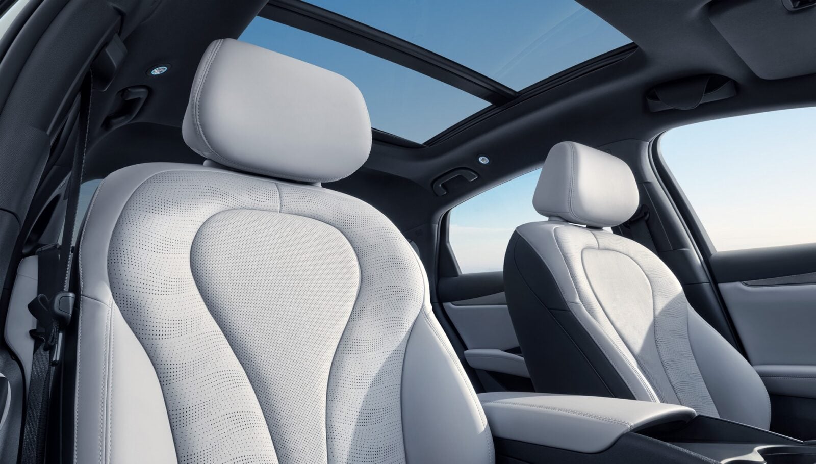 Niezależnie od wybranego nadwozia dostajesz ten sam, kompletny pakiet bezpieczeństwa i systemów asystujących. Siedem poduszek powietrznych, mocowania ISOFIX i i-Size z przodu oraz z tyłu, czujniki parkowania z przodu i z tyłu, kamera cofania lub pełny podgląd 360 stopni, adaptacyjny i inteligentny tempomat, system monitorowania martwego pola, ostrzeganie i hamowanie przy ruchu poprzecznym z tyłu, asystent utrzymania pasa ruchu oraz ostrzeganie przed kolizją z przodu i z tyłu. Do tego dochodzi funkcja V2L o mocy 3,3 kW, dzięki której zarówno sedan, jak i Touring mogą zasilić sprzęty elektroniczne poza samochodem.
