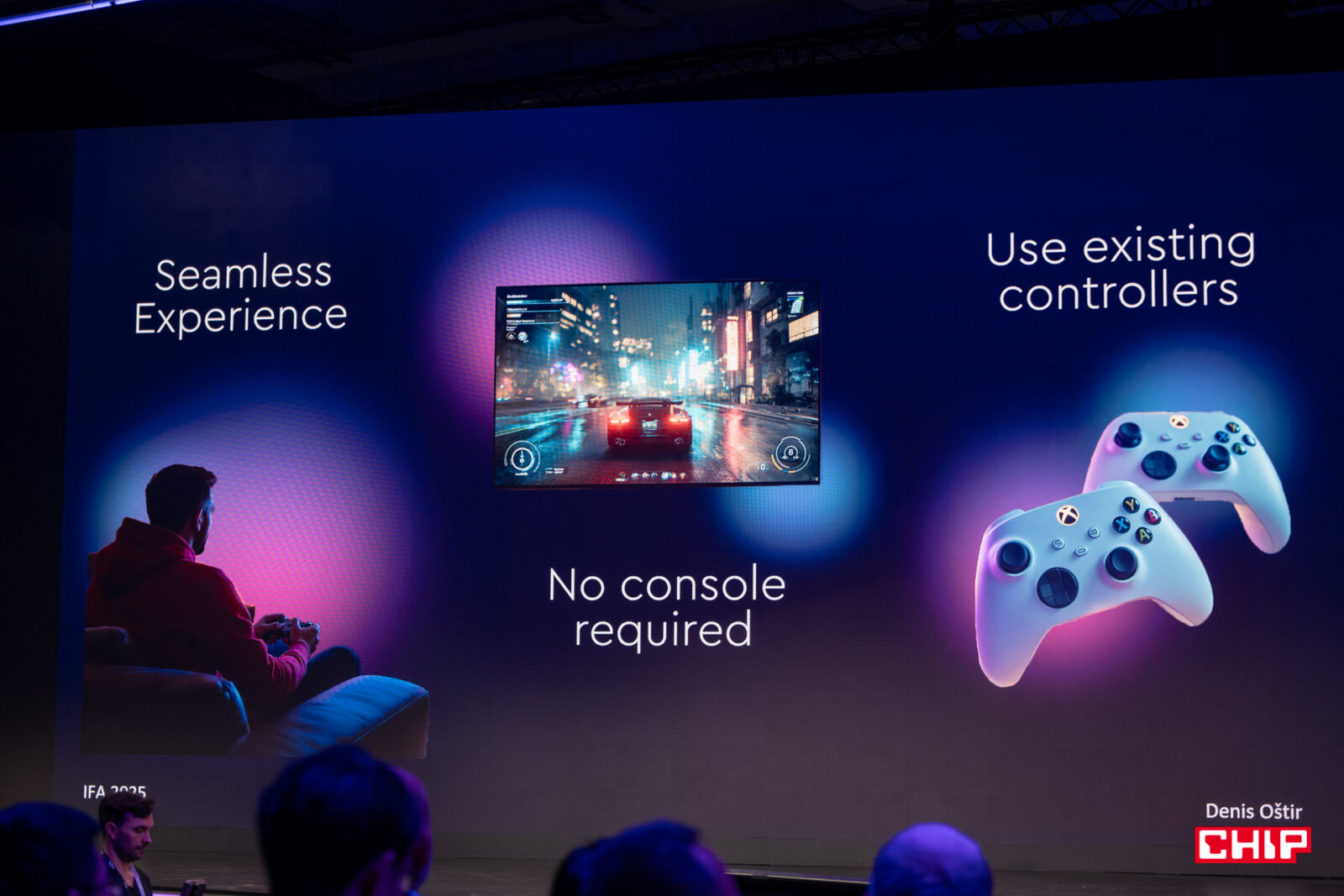 Ze sceny w Berlinie zapowiedziano nadejście aplikacji Xbox z opcją strumieniowania gier. Bez konieczności posiadania gier czy konsoli skorzystamy z usługi gry w chmurze oferowanego przez Microsoft dla posiadaczy abonamentu Game Pass. Kontrolery połączymy za pomocą Bluetooth z telewizorem, następnie wybierzemy jeden z tytułów z biblioteki i to tyle. Otrzymamy wszystkie korzyści, jakie dają telewizory Hisense, w tym VRR, rekompensację brakujących klatek czy zwiększoną płynność.