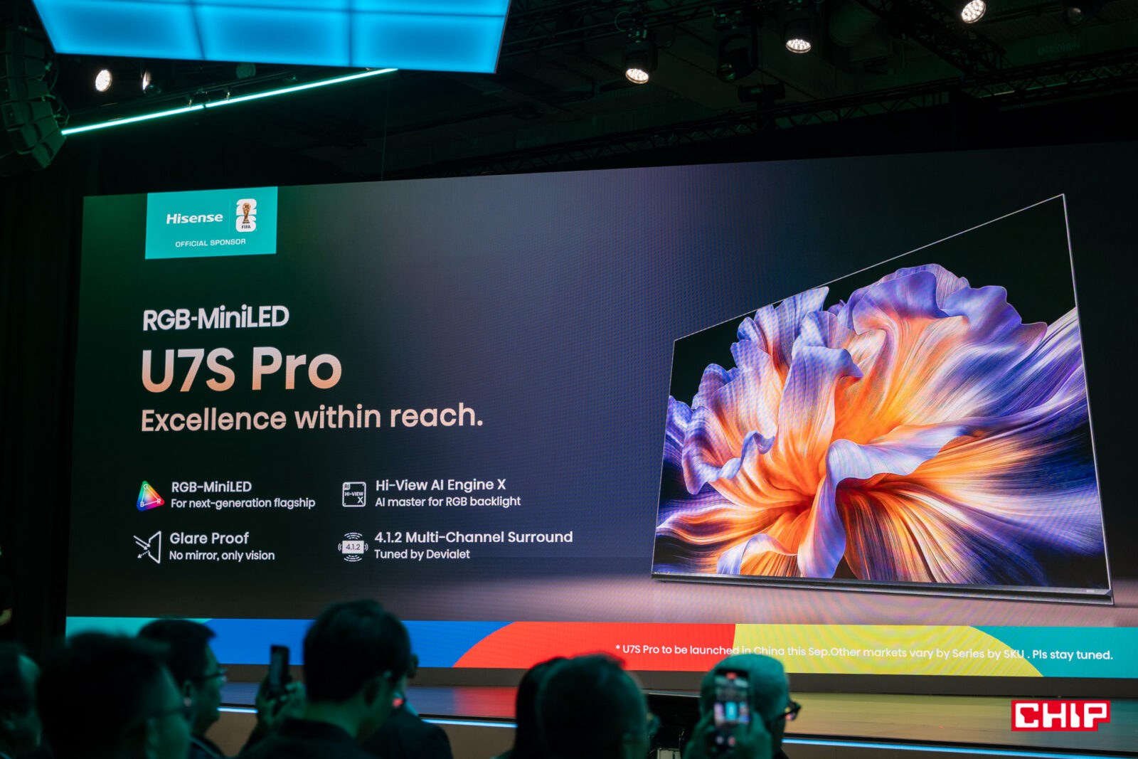 W dostępnym na polskim rynku pierwszym telewizorze z matrycą RGB-MiniLED, 116-calowym Hisense 116UXQ, odwzorowanie kolorów sięga nawet 95% palety barw BT.2020. Producent zaimplementuje technologię RGB-MiniLED do telewizorów z nowej serii U7S Pro. Wyróżni je także powłoka redukująca odbicia, co może się przydać w obliczu oglądania meczów w nieoczywistych godzinach. Za jakość obrazu odpowiadać będzie Hi-View AI Engine X – najmocniejsza z dostępnych w telewizorach Hisense jednostka sztucznej inteligencji, zdolna do podbijania jakości do HDR oraz rozdzielczości do 4K. Nowy telewizor otrzyma przy tym system głośników 4.1.2 dostrajanych przez Devialet.