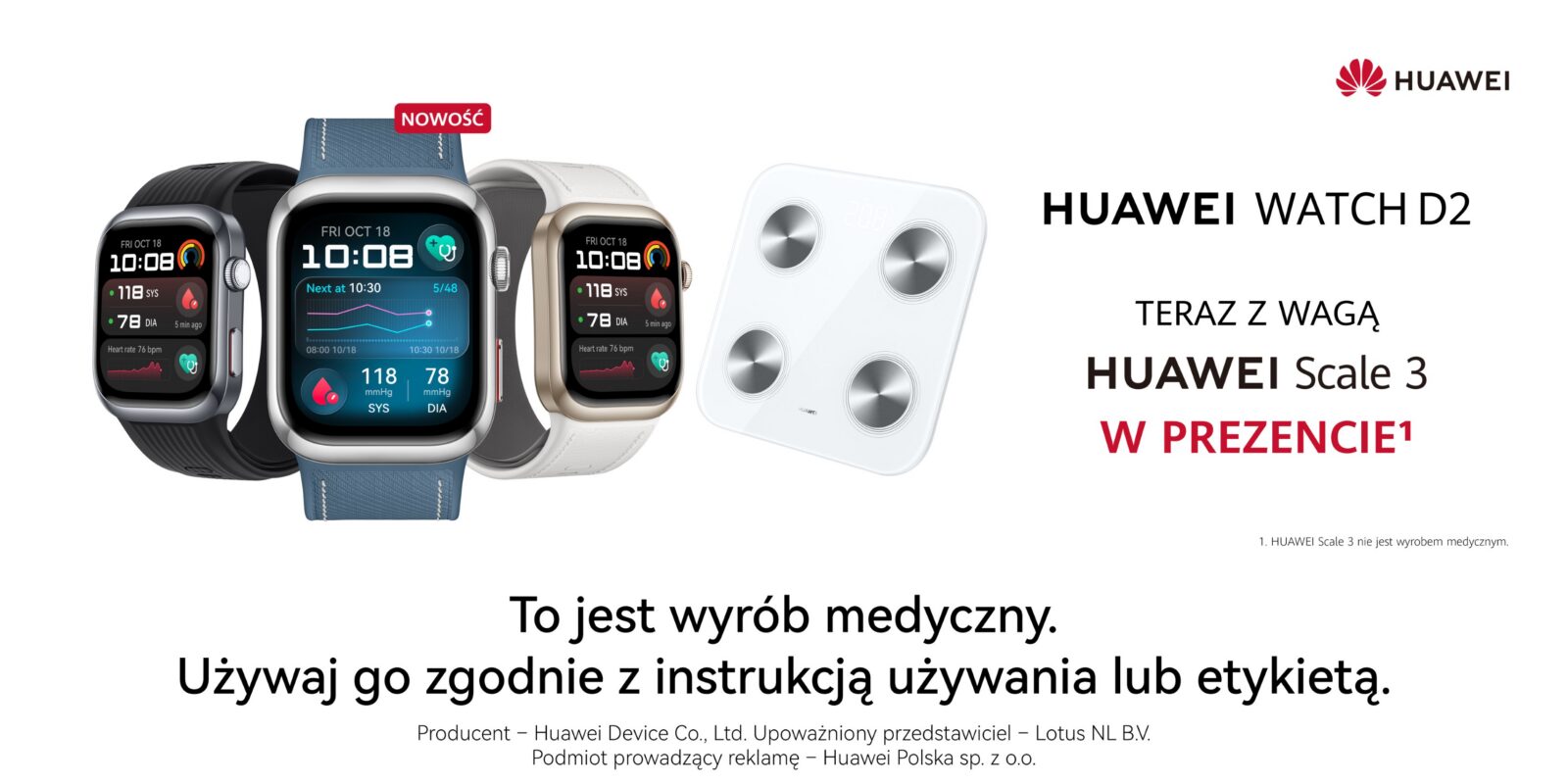 Nowy Huawei Watch D2 to idealne połączenie stylowego designu z zaawansowanymi funkcjami medycznymi, z których możemy korzystać przez cały dzień. Oprócz przełomowej analizy fali tętna, zegarek zyskał nowy, elegancki niebieski wariant kolorystyczny, który dołącza do dotychczasowej gamy. Dzięki nowemu paskowi inspirowanemu skórą rekina i lekkiej obudowie, komfort noszenia jest jeszcze większy. Nowa funkcja ma pojawić się w czwartym kwartale 2025 roku.