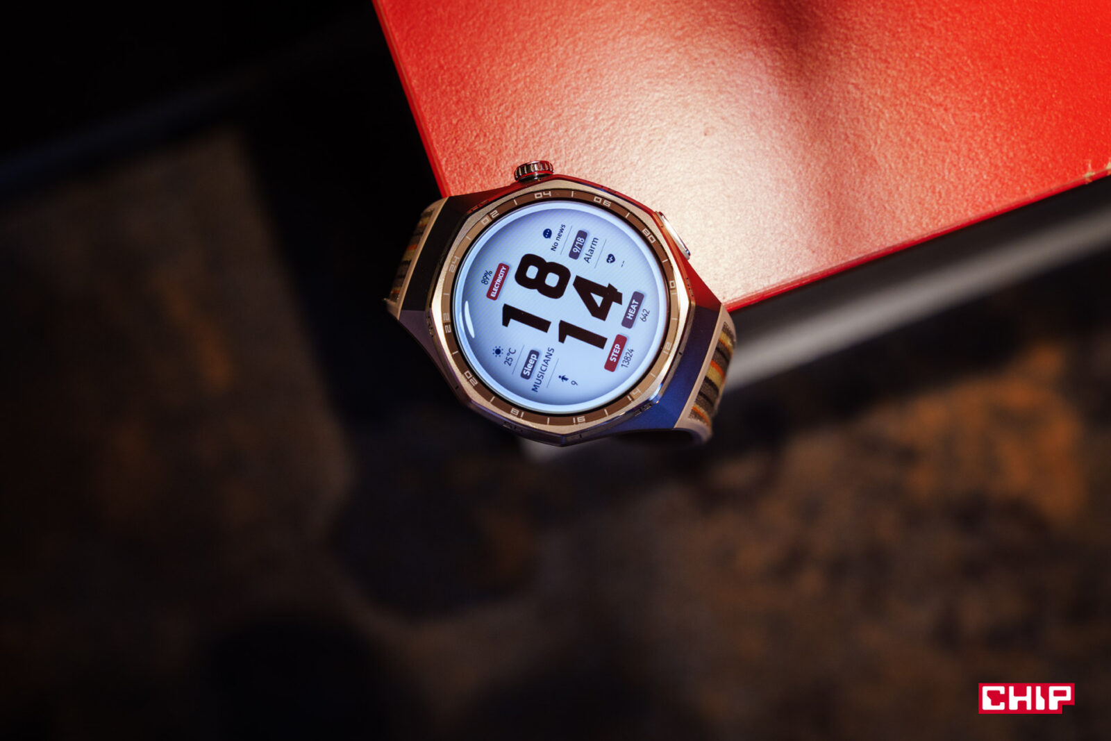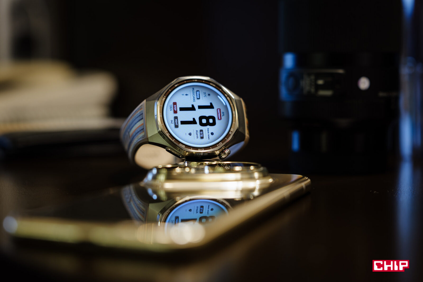 Dodajmy jeszcze, z czego wykonany jest zegarek. Koperta to stop tytanu klasy lotniczej, od spodu mamy ceramikę, a ekran chroni szafirowe szkło. Konstrukcja jest szczelna i odporna, zgodnie z normą IP69, a z zegarkiem można nurkować na głębokość 40 metrów. Mając w pamięci wzorową odporność poprzednich modeli Huaweia, tutaj byłbym o nią spokojny.
