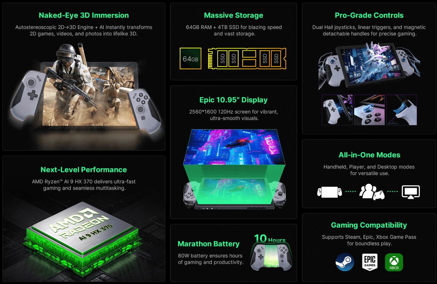 Pod względem wydajności HoloMax ma konkurować z dedykowanymi konsolami dzięki procesorowi AMD AI9 HX370 z grafiką Radeon 890M, pamięci LPDDR5 i szybkiemu magazynowaniu NVMe. Modularna konstrukcja z odłączanymi magnetycznymi kontrolerami, regulowaną podstawką i magnetyczną klawiaturą umożliwia szybkie przejście między trybem przenośnej konsoli a stacjonarnym stanowiskiem pracy. Taka elastyczność mogłaby szczególnie zainteresować twórców treści potrzebujących narzędzi do produkcji materiałów stereoskopowych z natychmiastowym podglądem efektów.