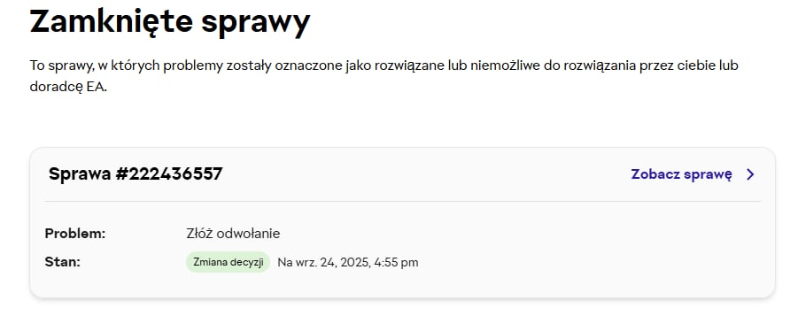 Po kilku miesiącach właściciel konta wrócił do sprawy, kiedy to otwarte testy beta gry Battlefield VI przypomniały o pierwotnie ukrytym problemie – powiązaniu konta EA z kontem Steam. Czat powitał go chłodno, sprawiając wrażenie nie rzeczywistego asystenta, a zautomatyzowanej sztucznej inteligencji, która grzecznie powtarzała te same skrypty.