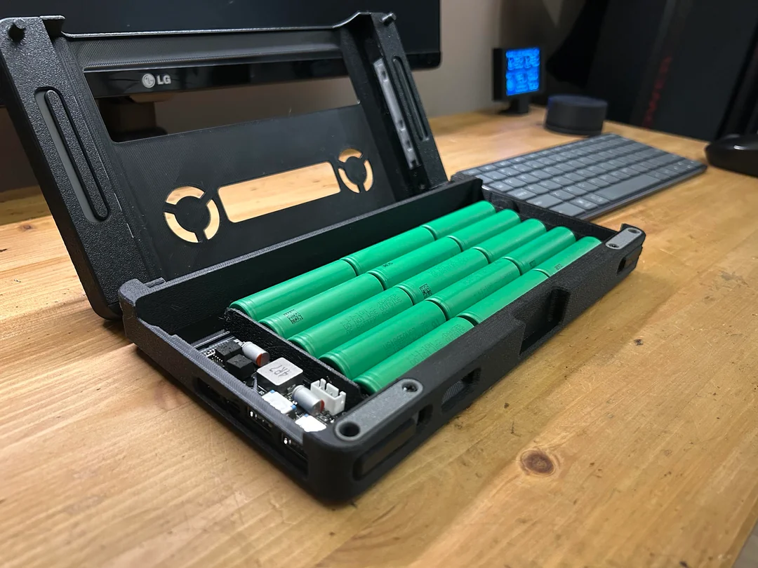 Modder przygotował dwie wersje swojego projektu. Bardziej masywna wersja wyposażona jest w dodatkowy pakiet baterii o pojemności 190 Wh, składający się z 15 ogniw litowych 18650 z pełnym systemem zarządzania ładowaniem. Taka pojemność może wydłużyć czas pracy urządzenia o godziny, a przy lżejszym użyciu nawet o kilka dni. Co ciekawe, waga dodatkowej baterii pełni też funkcję stabilizatora całej konstrukcji, eliminując potrzebę używania dodatkowej podstawki. W podstawie znalazło się również miejsce na bezprzewodową klawiaturę marki Lenovo.