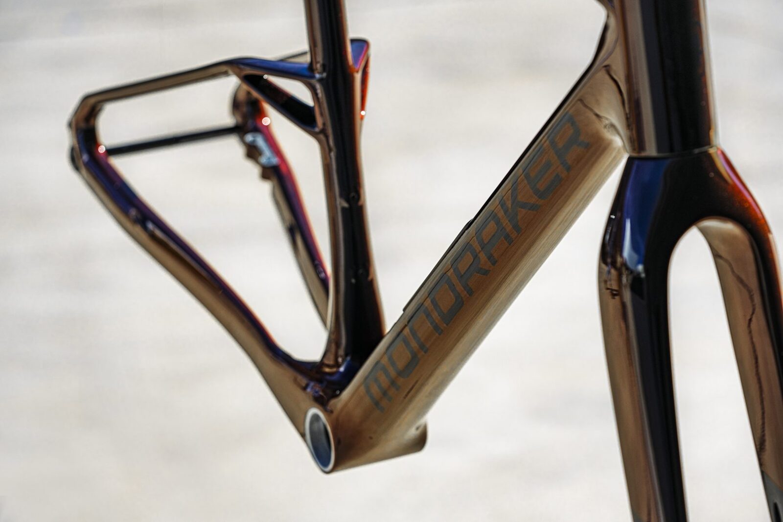 Charakterystyczne dla Mondrakera geometryczne wycięcia w ramie, tym razem umieszczone w tylnej części konstrukcji, bo w miejscu połączenia widełek z rurą podsiodłową, pełnią nie tylko funkcję wizualną. Projektantom w tym akurat szczególe konstrukcyjnym chodziło również o wpływ na pionową elastyczność całej ramy. Rama została bowiem wyposażona w rozwiązania znane z górskich odpowiedników, takie jak wewnętrzne prowadzenie przewodów, kompatybilność z napędem jednozębatkowym i uniwersalnym hakiem przerzutki UDH. Z kolei dzięki prześwitowi na opony do 50 mm rower nadaje się zarówno do dynamicznych wyścigów gravelowych, jak i spokojniejszych, wielodniowych wypraw bikepackingowych.
