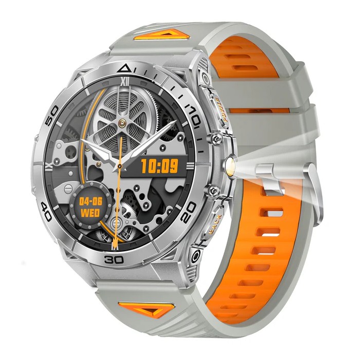 Do dyspozycji użytkowników jest 1,83-calowy ekran AMOLED. Właśnie wykorzystanie takiego panelu wyróżnia Rogbid Titan K na tle innych budżetowych modeli, bo większość konkurencji wciąż korzysta z podstawowych paneli LCD, więc tutaj Rogbid rzeczywiście stara się iść o krok dalej. Dwa fizyczne przyciski i wbudowana latarka LED między nimi to rozwiązanie, które może się przydać podczas wieczornych aktywności lub w sytuacjach awaryjnych. To jeden z tych drobnych dodatków, które pokazują, że projektanci pomyśleli o praktycznym aspekcie użytkowania.