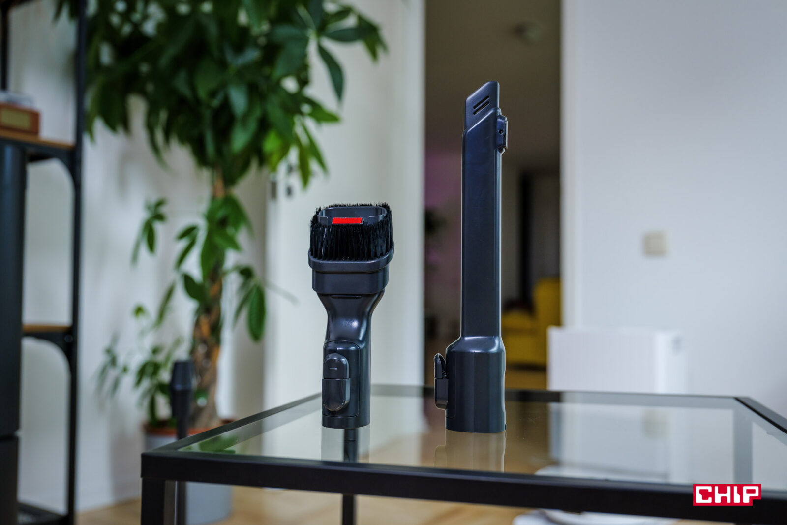 Do drobniejszego sprzątania mamy szczotkę do kurzu i szczelinową. Nie jestem fanem obu. Szczotka do kurzu ma dosyć twarde włosie i jeśli zbyt mocno będziemy ją dociskać do powierzchni, włosie rozejdzie się na boki i zaczyna odstawać już po pierwszych sprzątaniach. Z kolei szczotka szczelinowa nie ma żadnego włosia, ani miękkiej końcówki, co zmniejsza możliwości jej zastosowania.