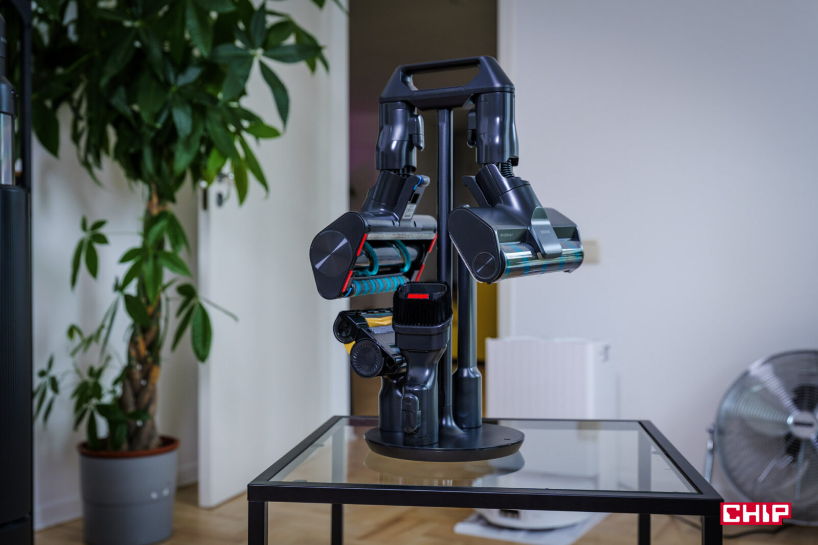 Głównym elementem jest tu stacja czyszcząca. To w niej odbywa się ładowanie akumulatora znajdujące się w głównym module odkurzacza oraz opróżniany jest pojemnik na zabrudzenia.