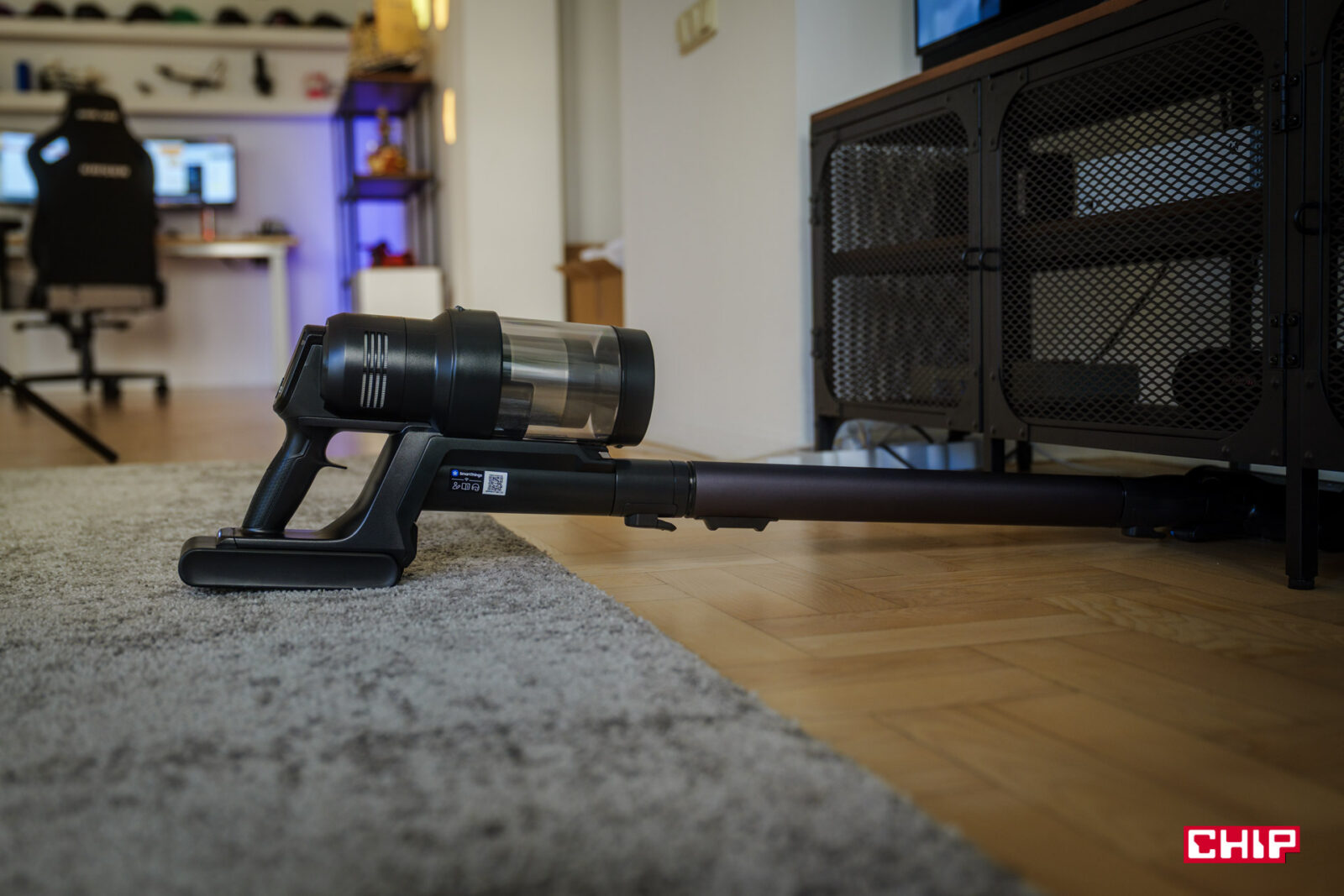 Bardziej od czystego powietrza interesowała mnie funkcja inteligentnego dostosowania mocy i prędkości obrotów szczotek do powierzchni. Niedawno Kacper testował popularnego Dysona, który miał z tym spory problem i szczotki blokowały się na dywanie, nawet z krótkim włosiem. Zwyczajnie moc ssania i tempo obrotów było zbyt wysokie.