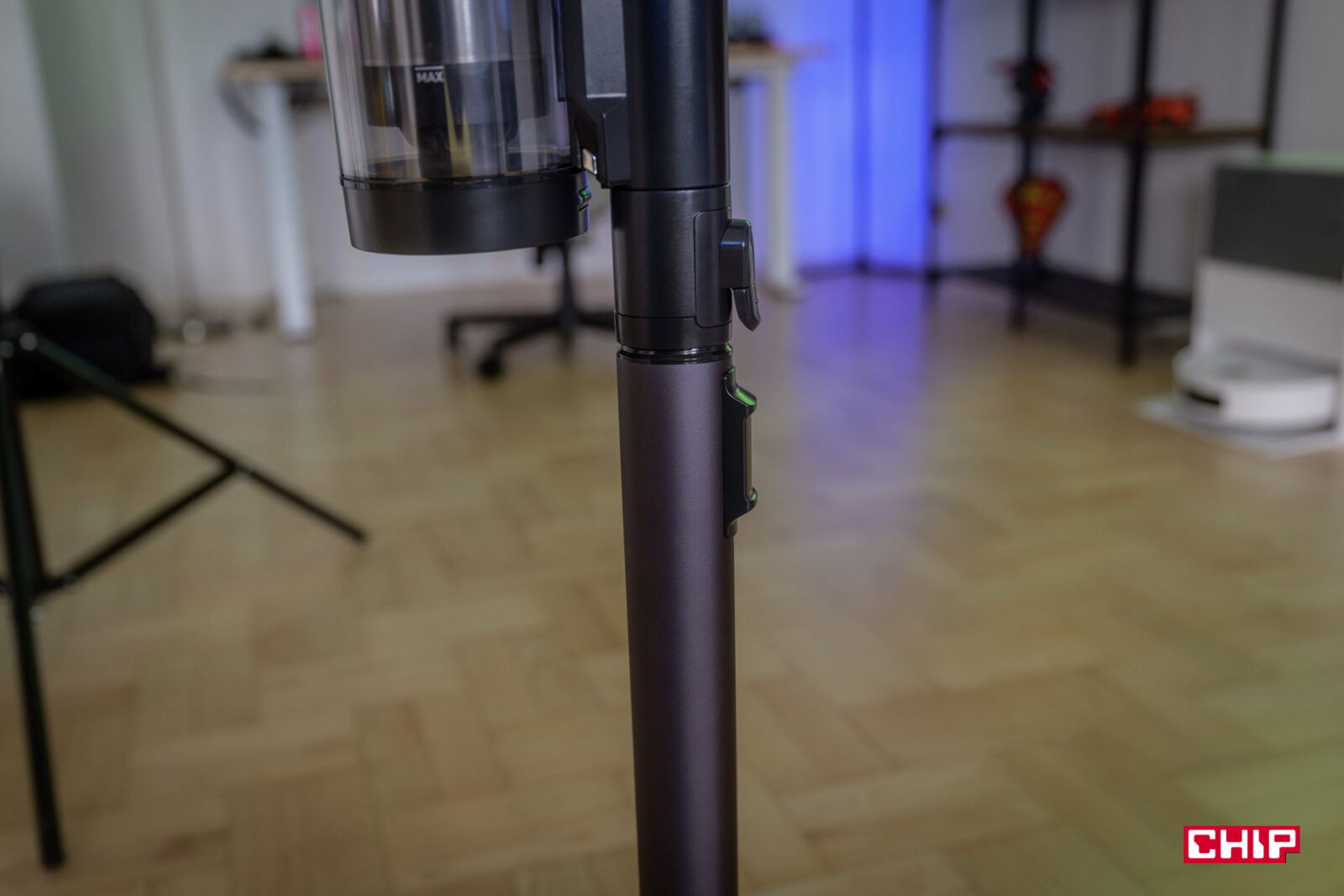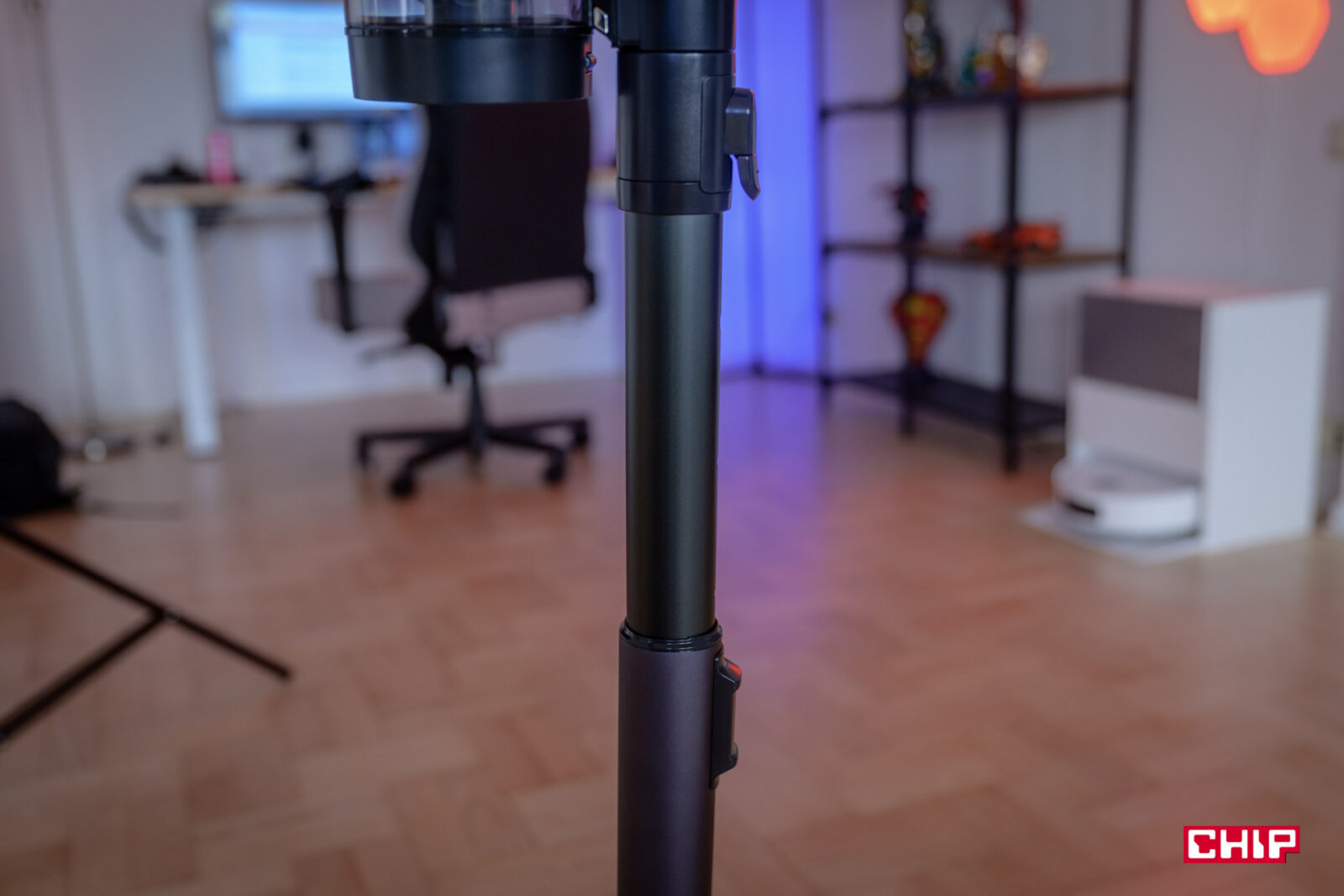 Bardzo przemyślanym elementem jest teleskopowa rura odkurzacza. Mała rzecz, a dużo zmienia, bo nawet wysokie osoby nie muszą się dzięki temu łamać w kręgosłupie podczas odkurzania. Do tego nie ma najmniejszego problemu z odkurzaniem pod meblami. Szczotki są niskie, a rurę możemy mieć idealnie równolegle do podłogi. Niestety rura jest niezbyt trwała. Może nie tyle rura, ile pokrywający ją lakier. Nie kojarzę ani jednej sytuacji, w której bym nią w cokolwiek uderzył, a szybko pojawiły się na niej pierwsze zarysowania.