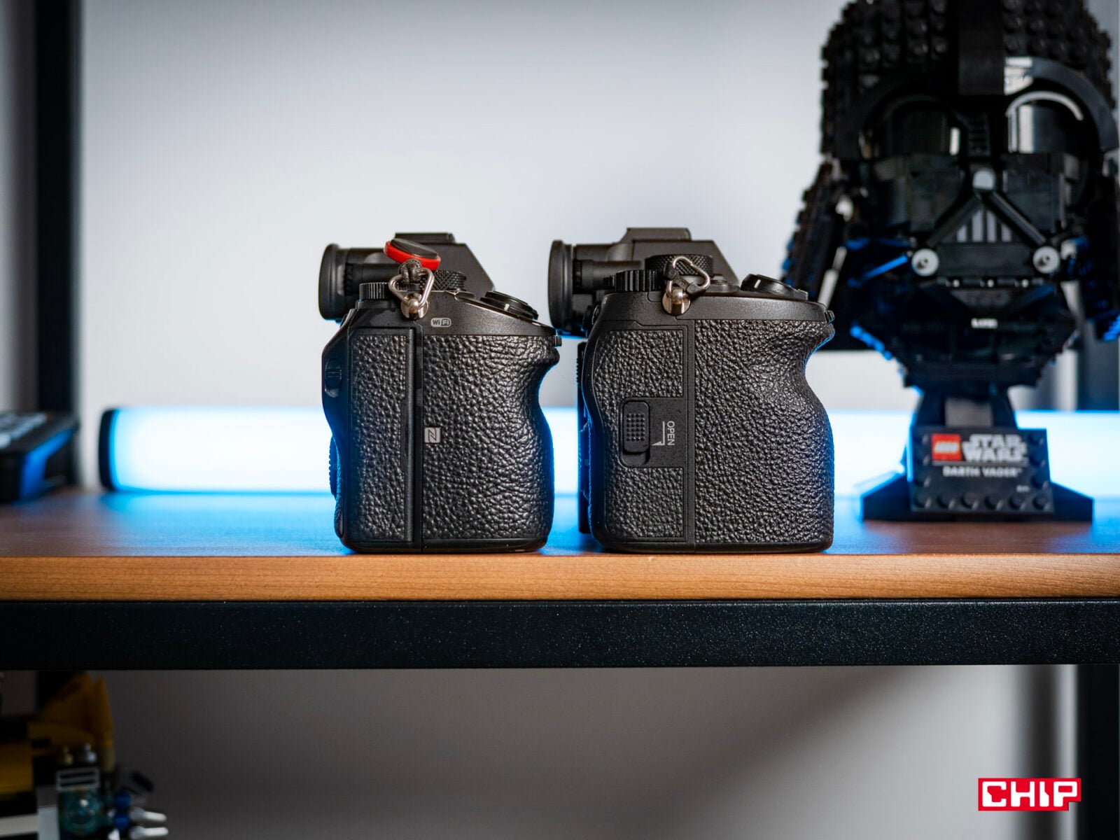Układ przycisków w obu aparatach jest praktycznie taki sam i każdy, kto zna obsługę aparatów Sony poczuje się tu jak w domu. A7R V ma dodatkowe pokrętło na górze obudowy, co zwiększa liczbę funkcji, którymi możemy sterować bez wchodzenia w dodatkowe Menu.