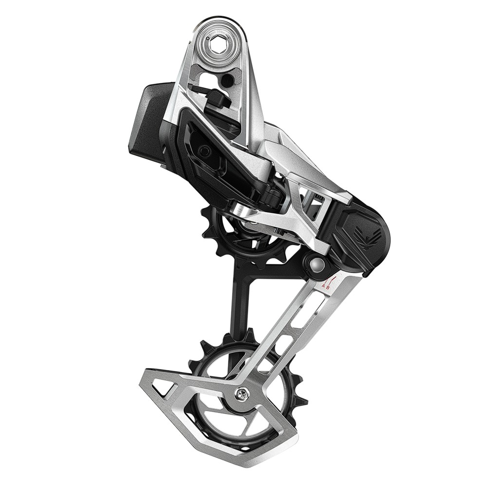 Łańcuch 1987 to ulepszona wersja najlżejszego łańcucha XX SL z pełnymi ogniwami i wydrążonymi sworzniami typu T. Kluczową innowacją jest powłoka hard chrome, która według producenta podnosi stosunek wytrzymałości do masy na zupełnie nowy poziom. Podobnie jak kaseta, ten komponent nie nadaje się do współpracy z napędami elektrycznymi. Z kolei tylna przerzutka łączy lekki korpus XX SL AXS z wytrzymalszą aluminiową klatką znaną z wersji XX. To efekt dwuletnich prac nad udoskonaleniem przerzutek T-Type, które zaowocowały szybszymi i bardziej kontrolowanymi zmianami przełożeń. SRAM opisuje ją jako najbardziej zaktualizowaną, wytrzymałą i responsywną przerzutkę w swojej ofercie.