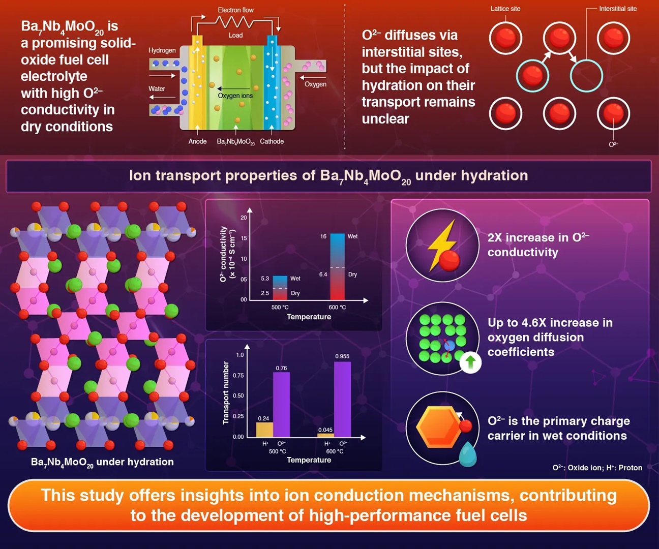 Wyniki badań, opublikowane w Journal of Materials Chemistry A, pokazują również, że przewodnictwo jonów tlenowych w wilgotnej atmosferze jest konsekwentnie wyższe niż w suchych warunkach. Symulacje komputerowe potwierdziły, że wynika to ze zwiększonej liczby dimerów powstających w wyniku hydratacji materiału. Dlatego też to odkrycie może mieć znaczenie nie tylko dla samej energetyki, ale także dla rozwoju nauki o materiałach. Patrząc na to bowiem z szerszej perspektywy, takie przewodniki jonowe mogą stać się ważnym elementem budowania bardziej zrównoważonego społeczeństwa.