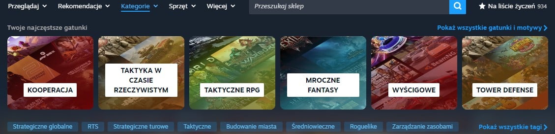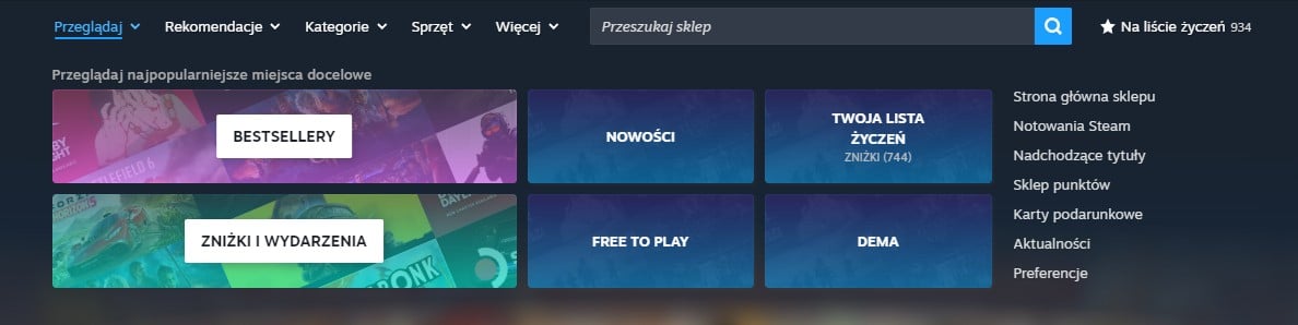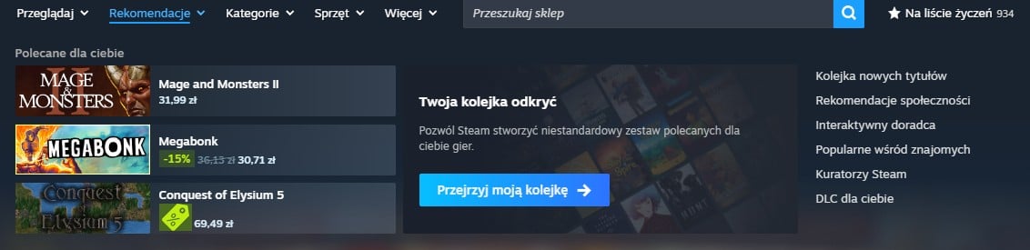 Zakładka „Przeglądaj” została przeprojektowana tak, aby lepiej odzwierciedlać naturalne sposoby odkrywania gier przez graczy. Znajdziemy tam szybkie linki do aktualnych bestsellerów, promocji, nowości, gier Free-to-Play oraz wersji demonstracyjnych. Sekcja „Rekomendacje” prezentuje spersonalizowane propozycje na podstawie historii użytkownika, podczas gdy „Kategorie” oferuje skróty do gatunków najczęściej eksplorowanych przez danego gracza.