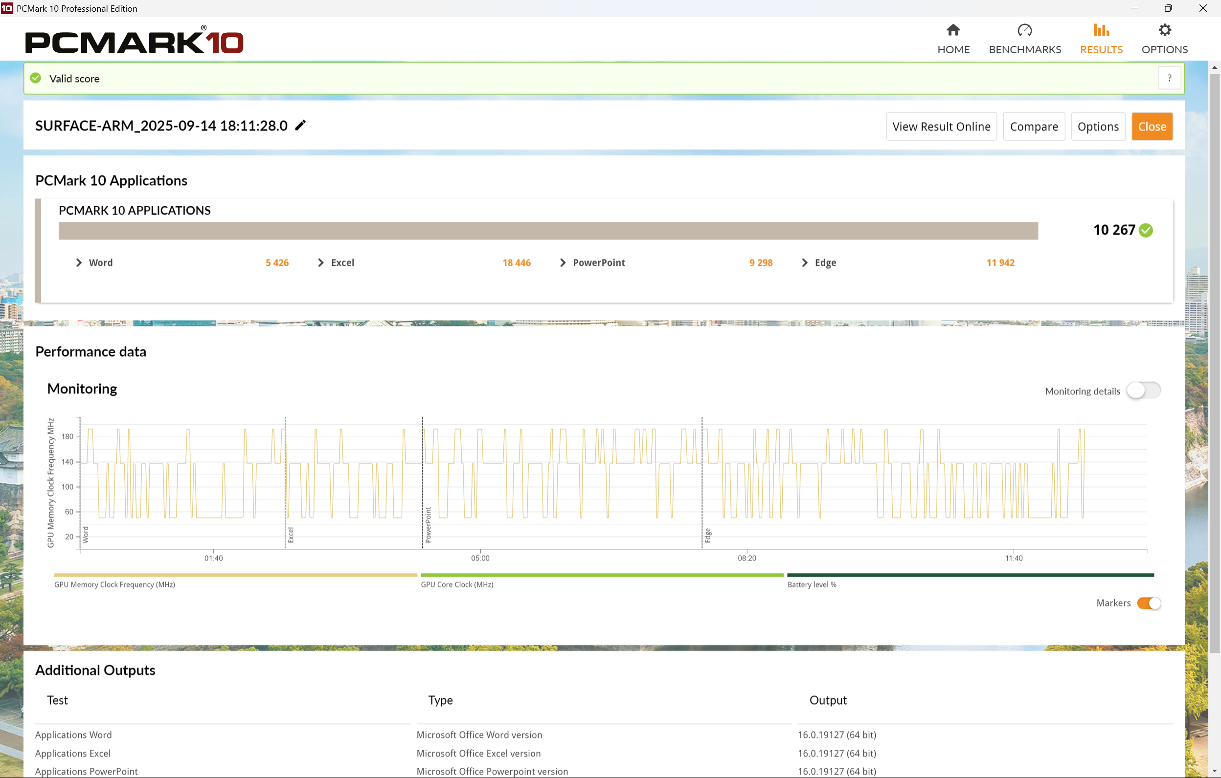 Kultura pracy stoi na znakomitym poziomie – Microsoft Surface Laptop 7 15,6″ ma wprawdzie układ aktywnego chłodzenia i nawet udało mi się go usłyszeć – po przyłożeniu ucha do obudowy. Przez większość czasu wentylator jest całkowicie wyłączony, a w okresach aktywności jest w praktyce niesłyszalny. Trzeba tu podkreślić, że w przeciwieństwie do laptopów z układami x64, które ze względu na konieczność oszczędzania energii po odłączeniu od zasilania mocno spowalniają CPU i GPU, Surface przez cały czas oferuje maksymalną wydajność.