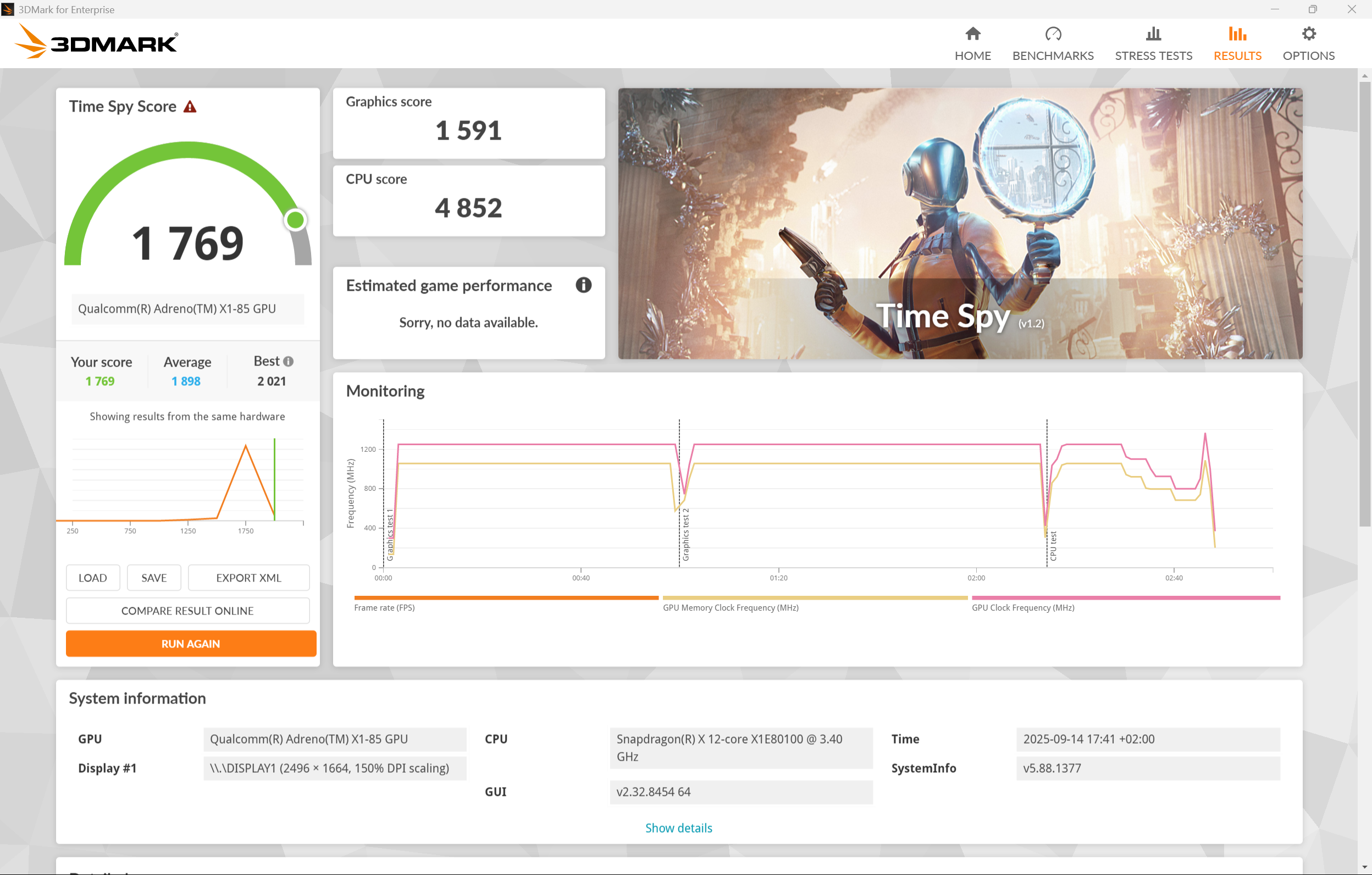 - Procesor: Qualcomm Snapdragon X Elite X1E80100(12 rdzeni, 12 wątków, 3.4 GHz, 42 MB cache)
