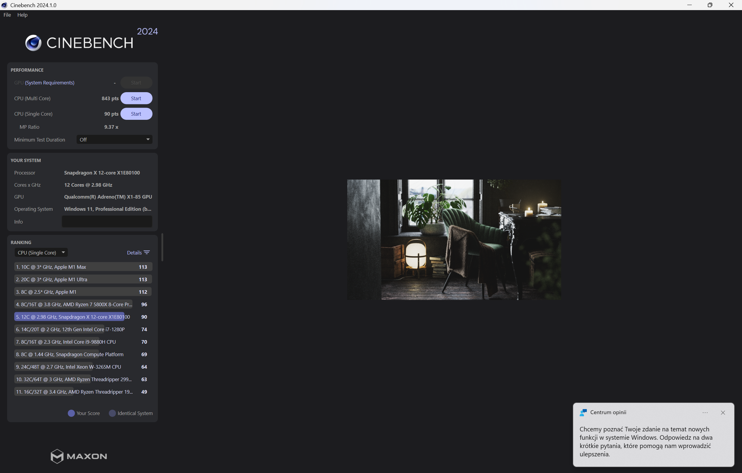 Wyniki są jednoznaczne, aczkolwiek dalekie od tego, czego Microsoft by pragnął – wydajność jednordzeniowa znacząco odbiega od układów Apple M4 i nawet 12 rdzeni Snapdragona kontra 10 rdzeni M4 nie pozwala na wygraną. Microsoft nie dowiózł także obietnicy, że w teście wielordzeniowym Cinebench 24 przewyższy Apple, choć trzeba przyznać, że było blisko.