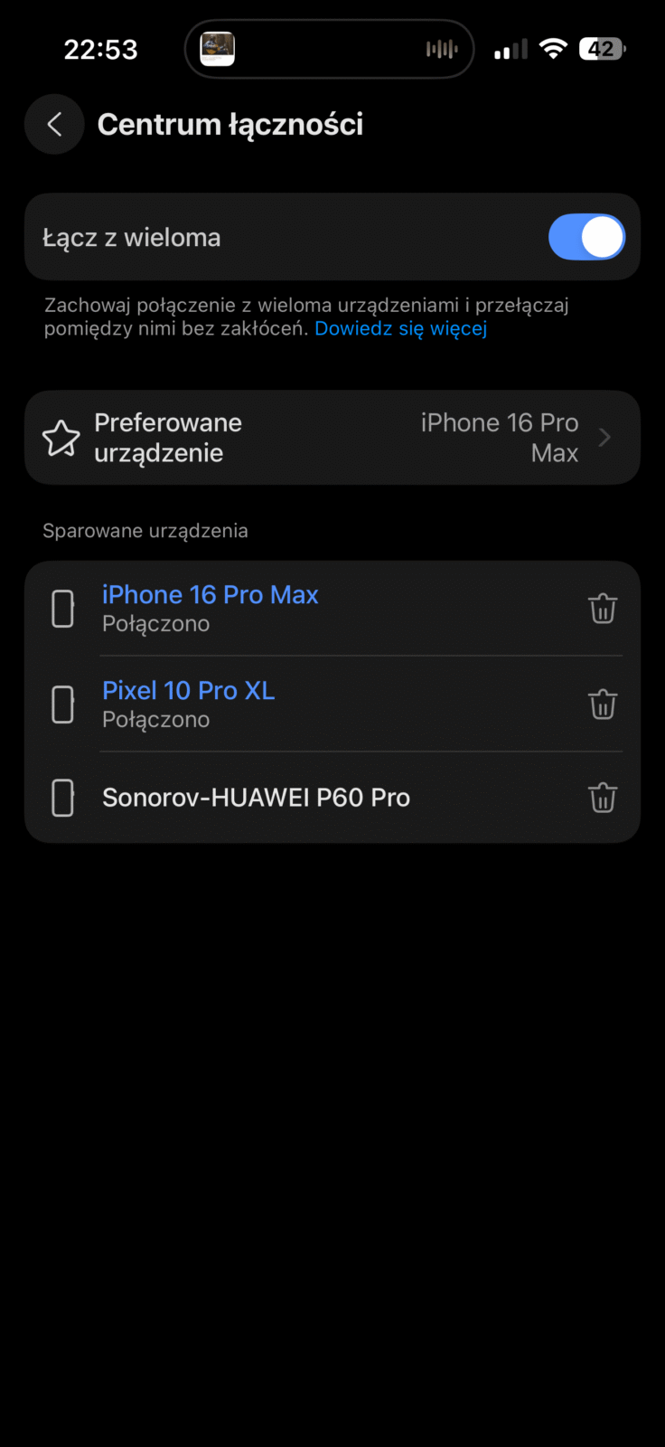 A guzik. Niestety Huawei gra nieczysto i w AI Life na iOS nie można wybrać, jakiego kodeka wysokiej rozdzielczości słuchawki mają używać. Huawei FreeBuds 7i obsługują zarówno własnościowy kodek Huawei L2HC, jak i będący standardem minimum Hi-Res Audio dla Androida LDAC – ale nie jednocześnie, a przełączyć domyślnego L2HC na LDAC bez programu z AppGallery się nie da i już. Wygrzebałem zatem z szuflady starego P60 Pro, zaktualizowałem aplikację, żeby w ogóle raczyła słuchawki zauważyć i dopiero tam pozmieniałem, co trzeba.