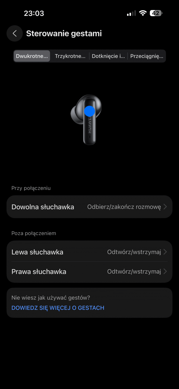 Natomiast słuchawki są z wyglądu identyczne, jak FreeBuds 6i – wykończone są na wysoki połysk, co z jednej strony ułatwia czyszczenie, ale jednocześnie dobrze widać na nich odciski palców. W konstrukcję zostały dyskretnie wkomponowane po 3 mikrofony (1 na patyczku, 2 na korpusie słuchawek) i elektrody dostarczające zasilania oraz czujnik zbliżeniowy. Wewnątrz znalazł się dodatkowy (w porównaniu z poprzednią edycją) mikrofon przewodnictwa kostnego, który ma usprawnić działanie słuchawek i układu ANC podczas rozmów. Do sterowania służą dotykowe panele na patyczkach – nie mam zastrzeżeń do sposobu działania.