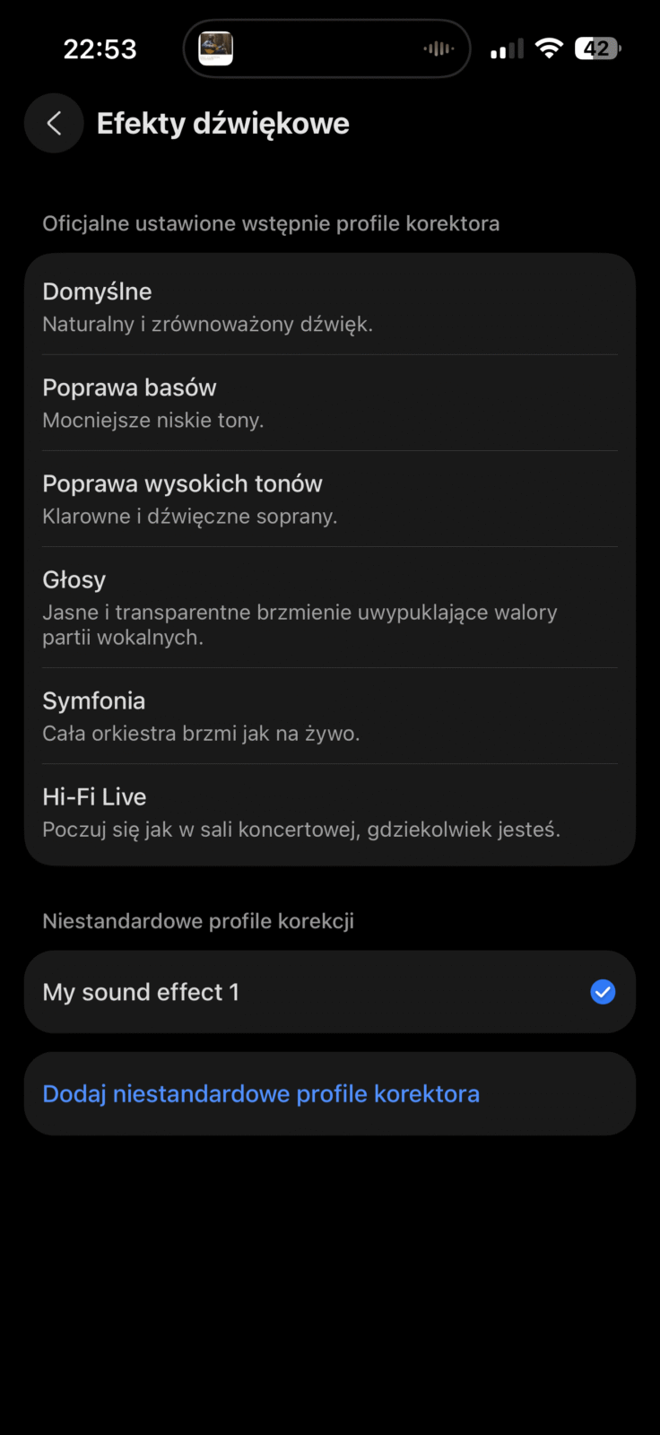 Włączenie ANC, jako się rzekło, wyraźnie zmienia charakter słuchawek – poziom basu rośnie tym bardziej, im mocniejsze działanie ANC, średnie tony przestają tak dominować, a wysokie tony nabierają nieco charakteru. Wciąż moim zdaniem warto pobawić się korektorem, ale zmiany, jakie uznałem za zadowalające, są znacznie bardziej dyskretne no i bas nie jest już tak dominujący jak w 6i, a to spory postęp.