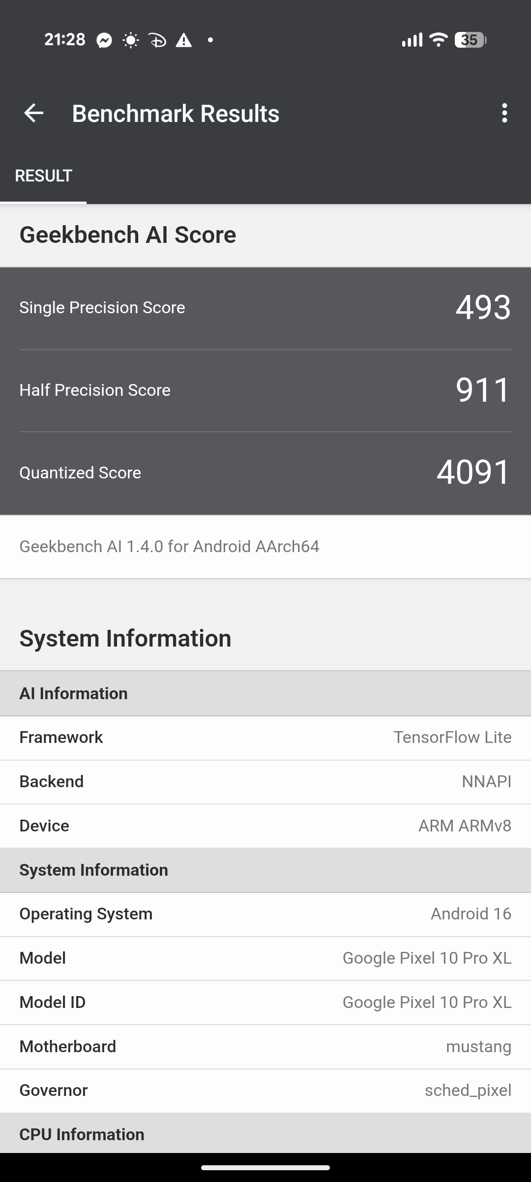 - Geekbench AI NNAPI: 493 / 911 / 4091 pkt