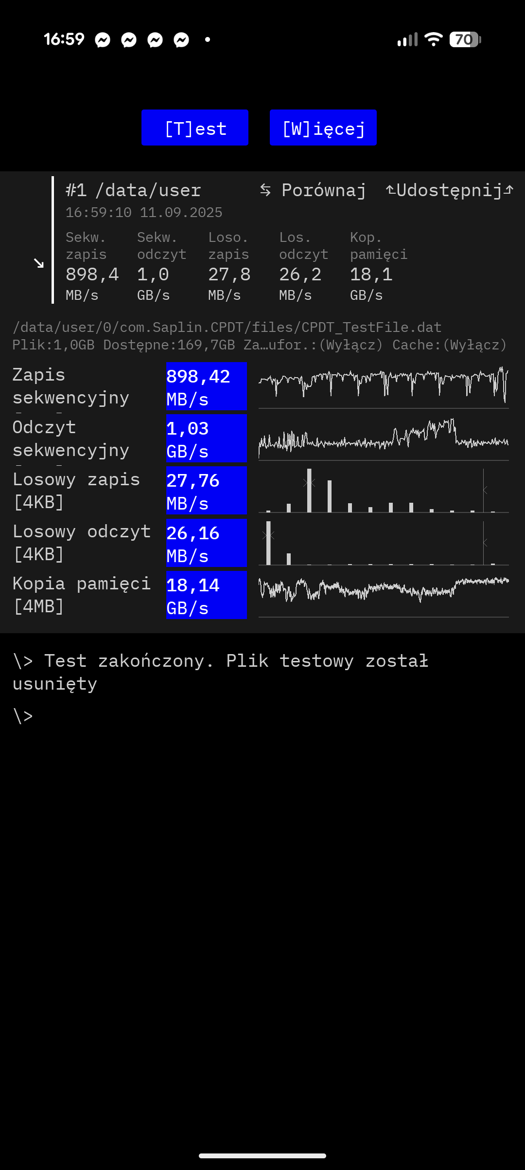 Zmiana z Pixela 9 Pro XL na 10 Pro XL to zarazem zmiana sposobu obsługi pamięci z UFS 3.11 na UFS 4 – wyniki testu pamięci to odzwierciedlają, mamy znaczny wzrost wydajności i wyniki odpowiednie dla flagowca.