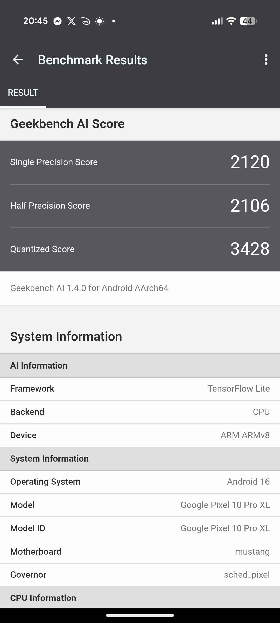 - Geekbench AI CPU: 2120 / 2106 / 3428 pkt