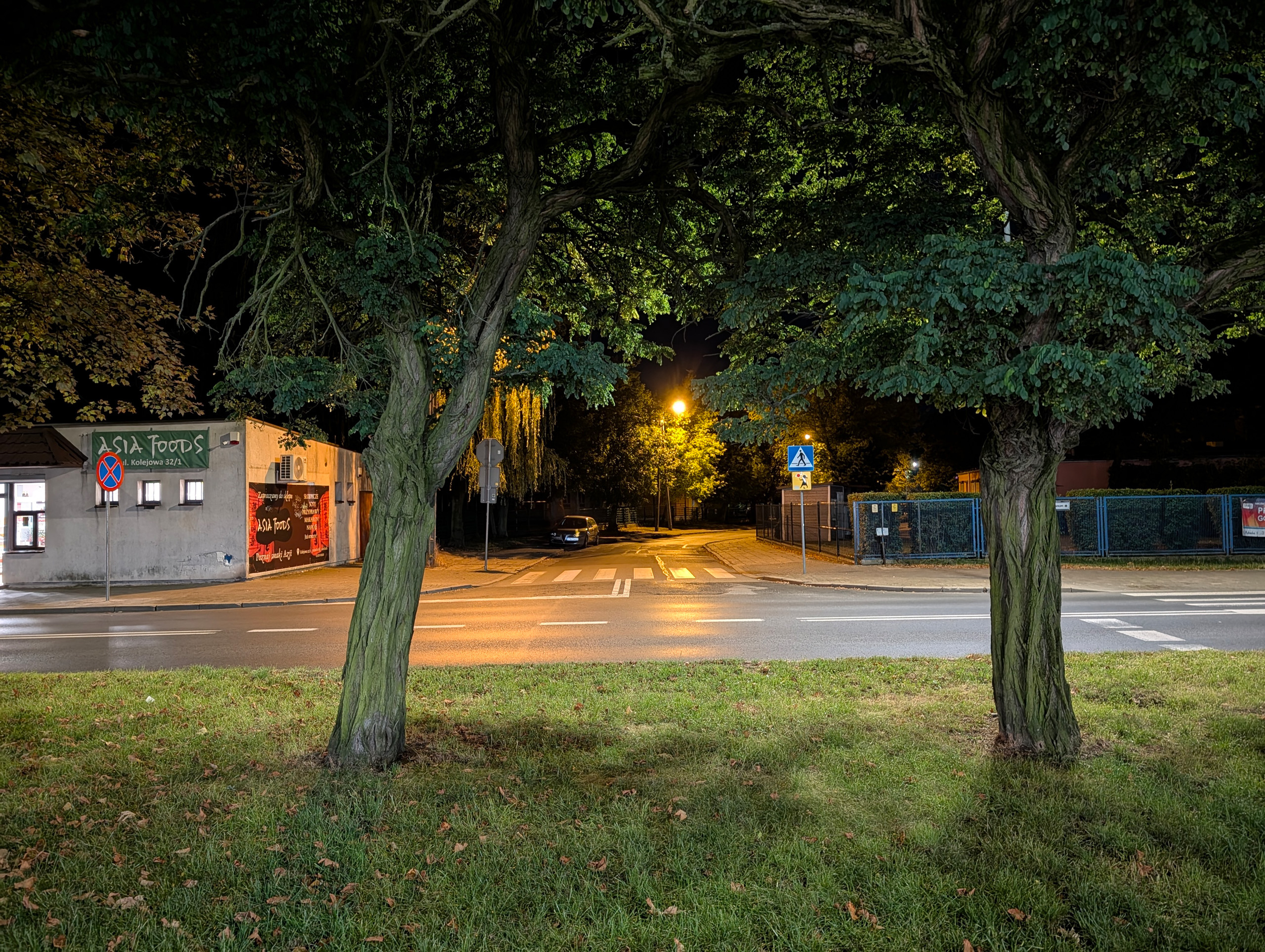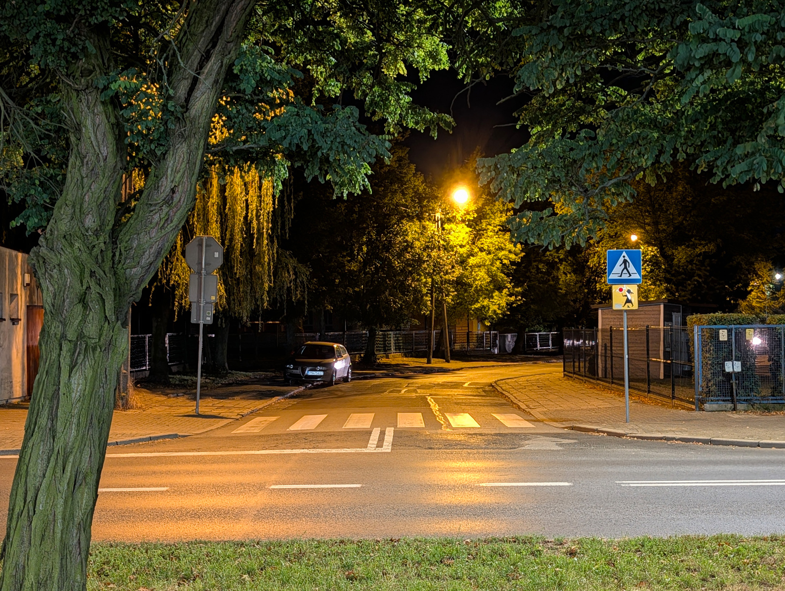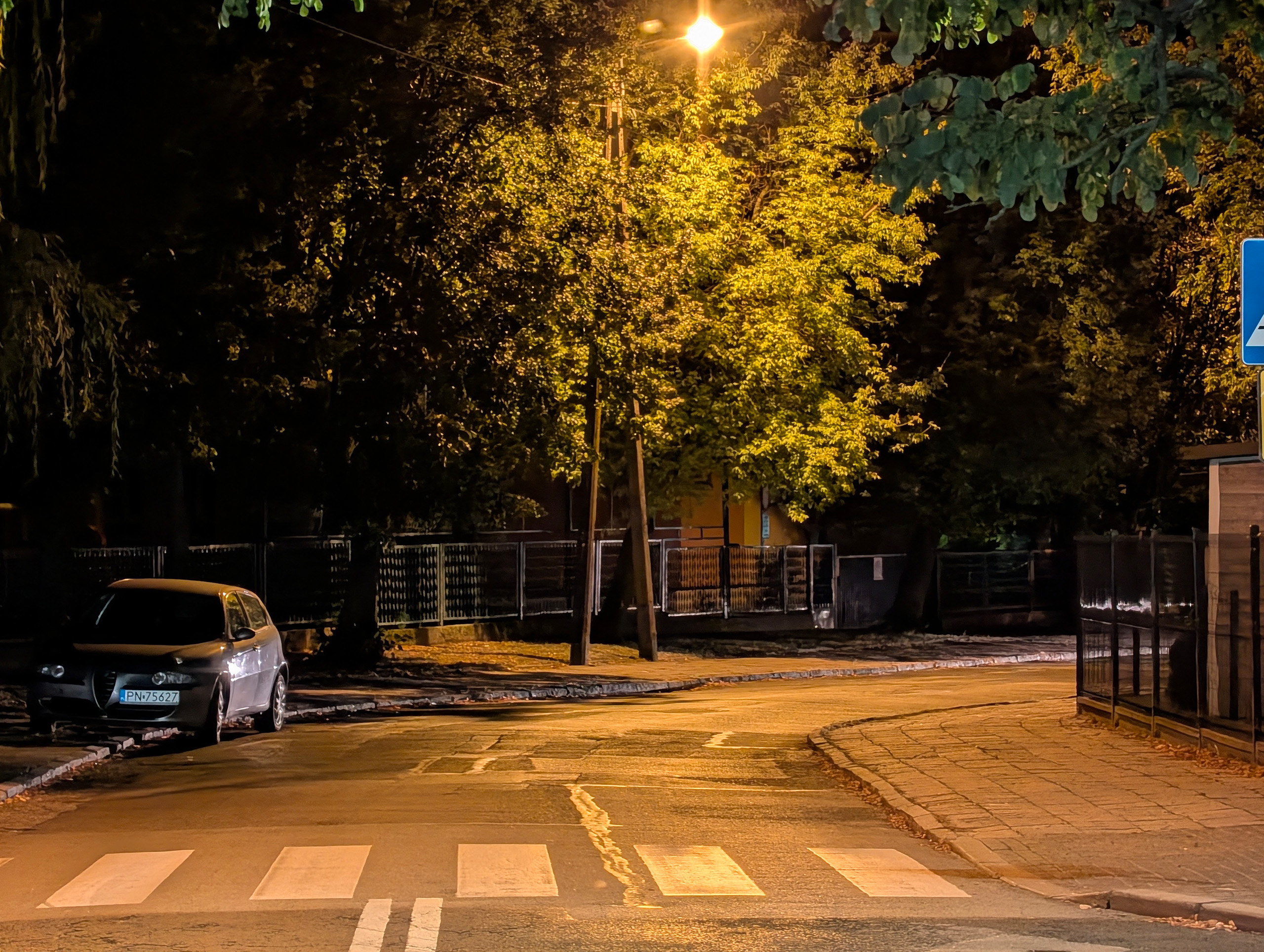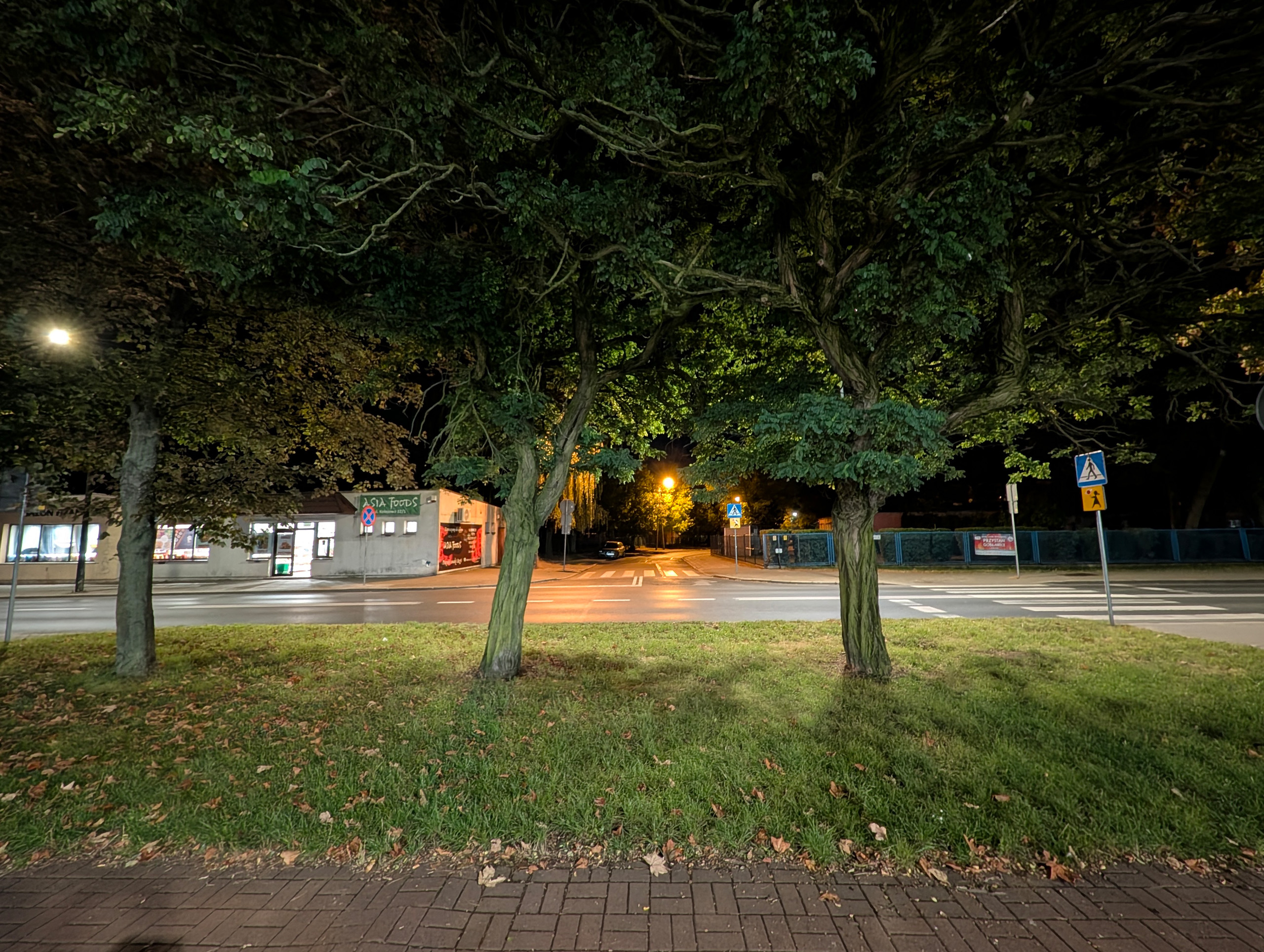 Pixel 10 Pro XL tradycyjnie dobrze sobie radzi w nocy – obraz z głównego aparatu jest naprawdę dobry, z bardzo umiarkowanymi flarami i minimalną ilością artefaktów, nadaje się także do zbliżeń ×2, jeśli jest dosyć światła. Aparat ultraszerokokątny także sobie radzi, choć widać, że obraz jest bardziej intensywnie przetwarzany i ma mniejszą szczegółowość. Najsłabiej wypada w tej kategorii teleobiektyw, który daje niezłe efekty dla bazowego zoomu i akceptowalne dla ×10, pod warunkiem że jest sporo światła. W naprawdę ciemnych sceneriach teleobiektywu lepiej nie używać.