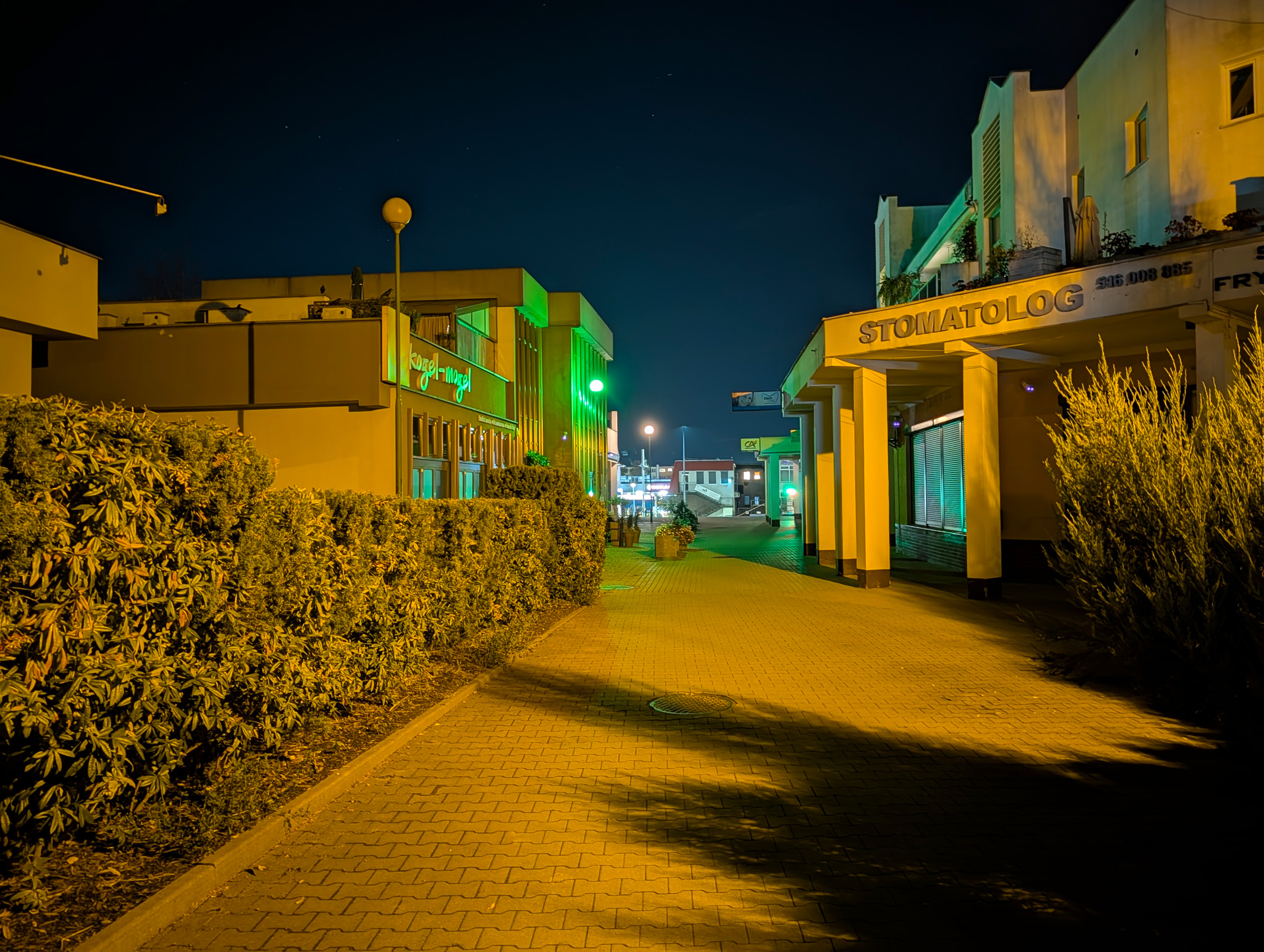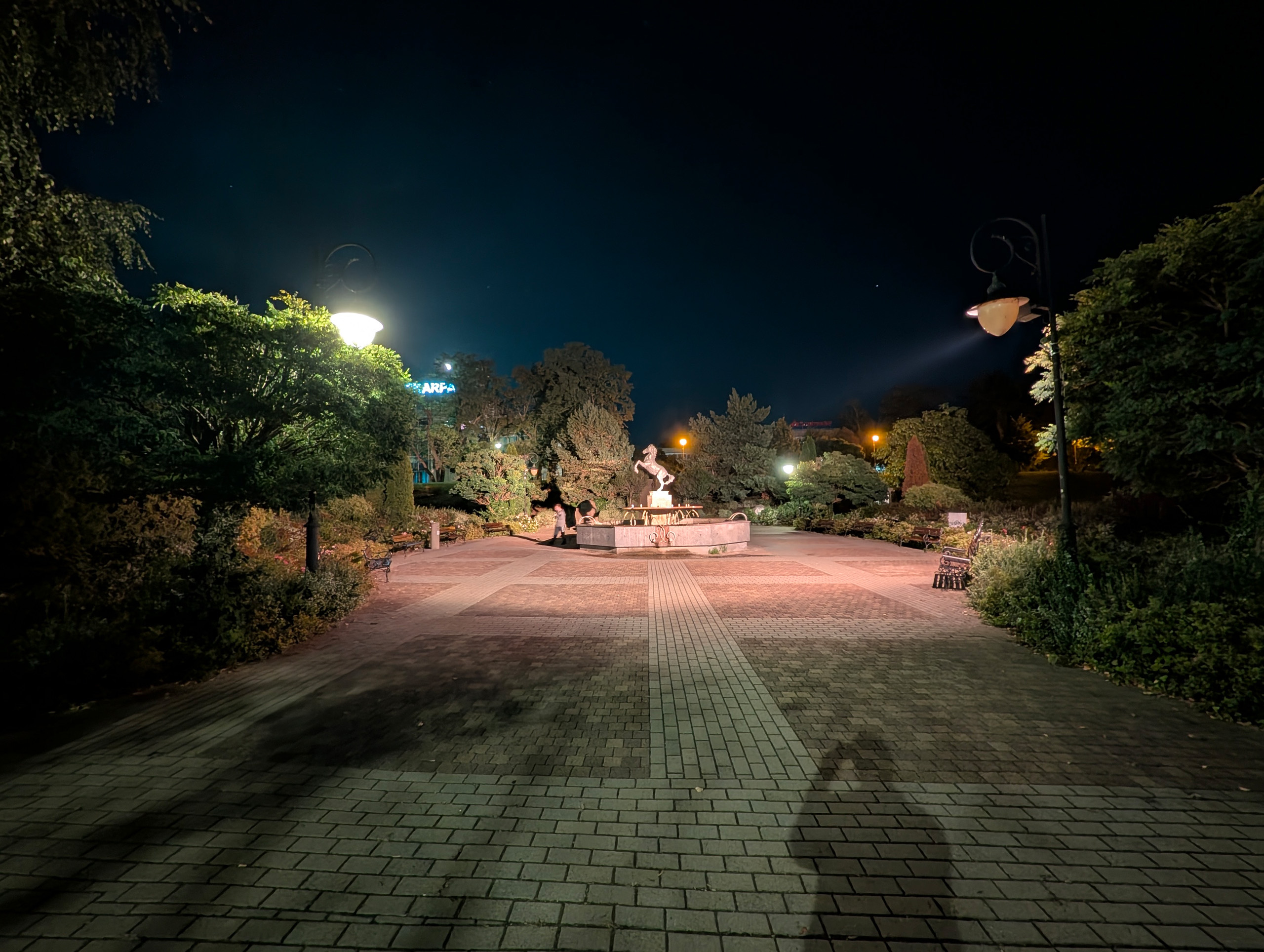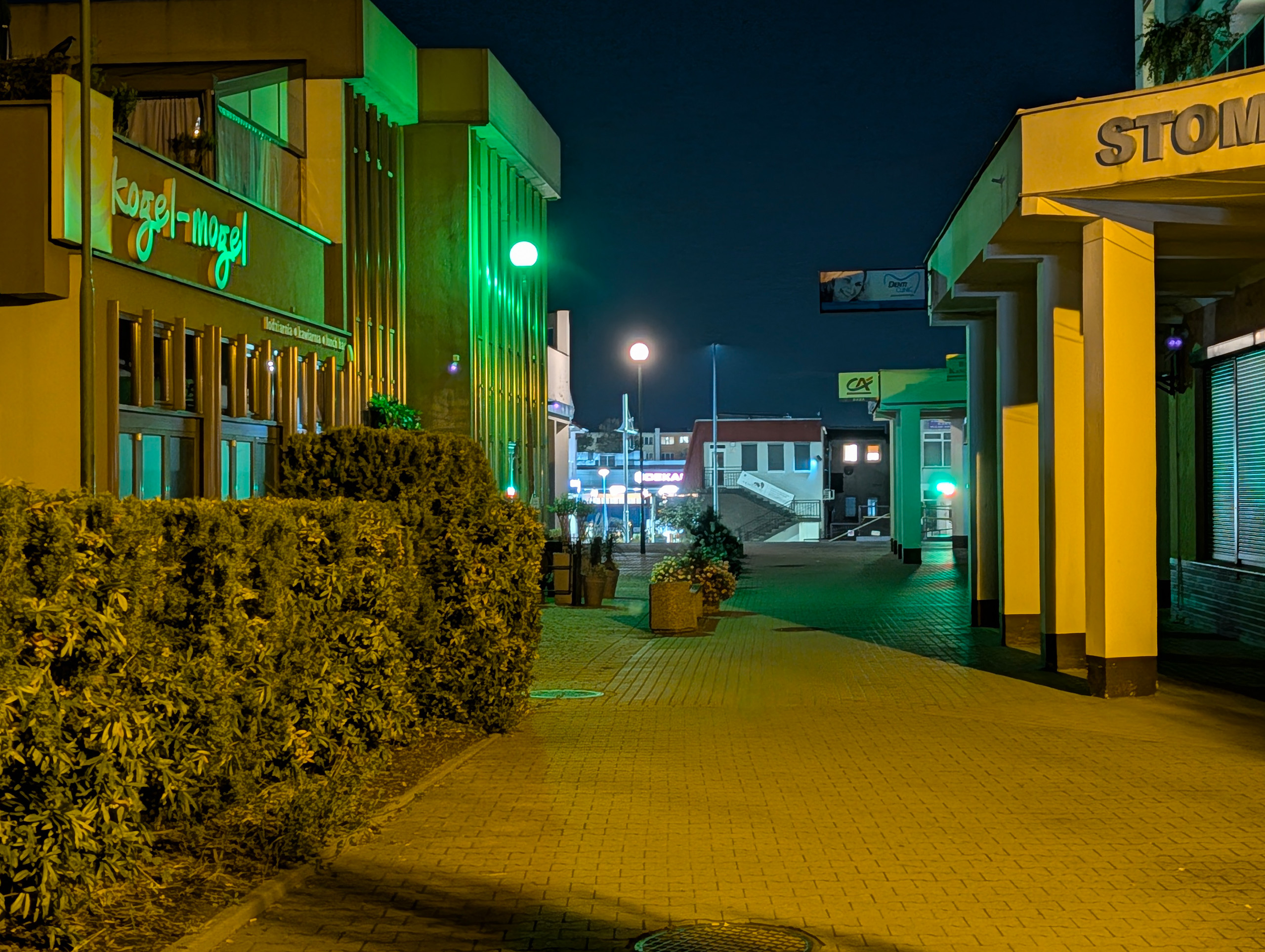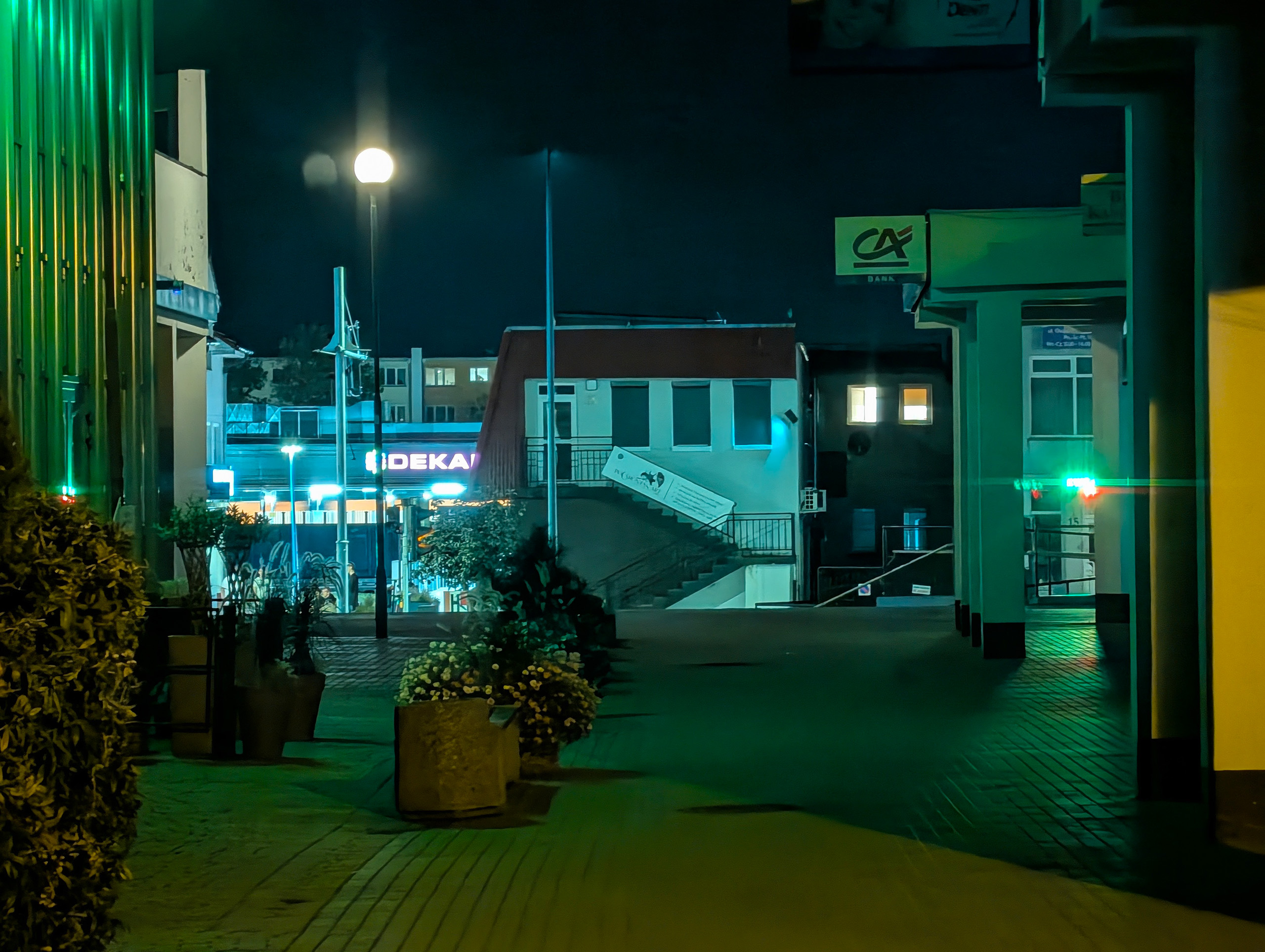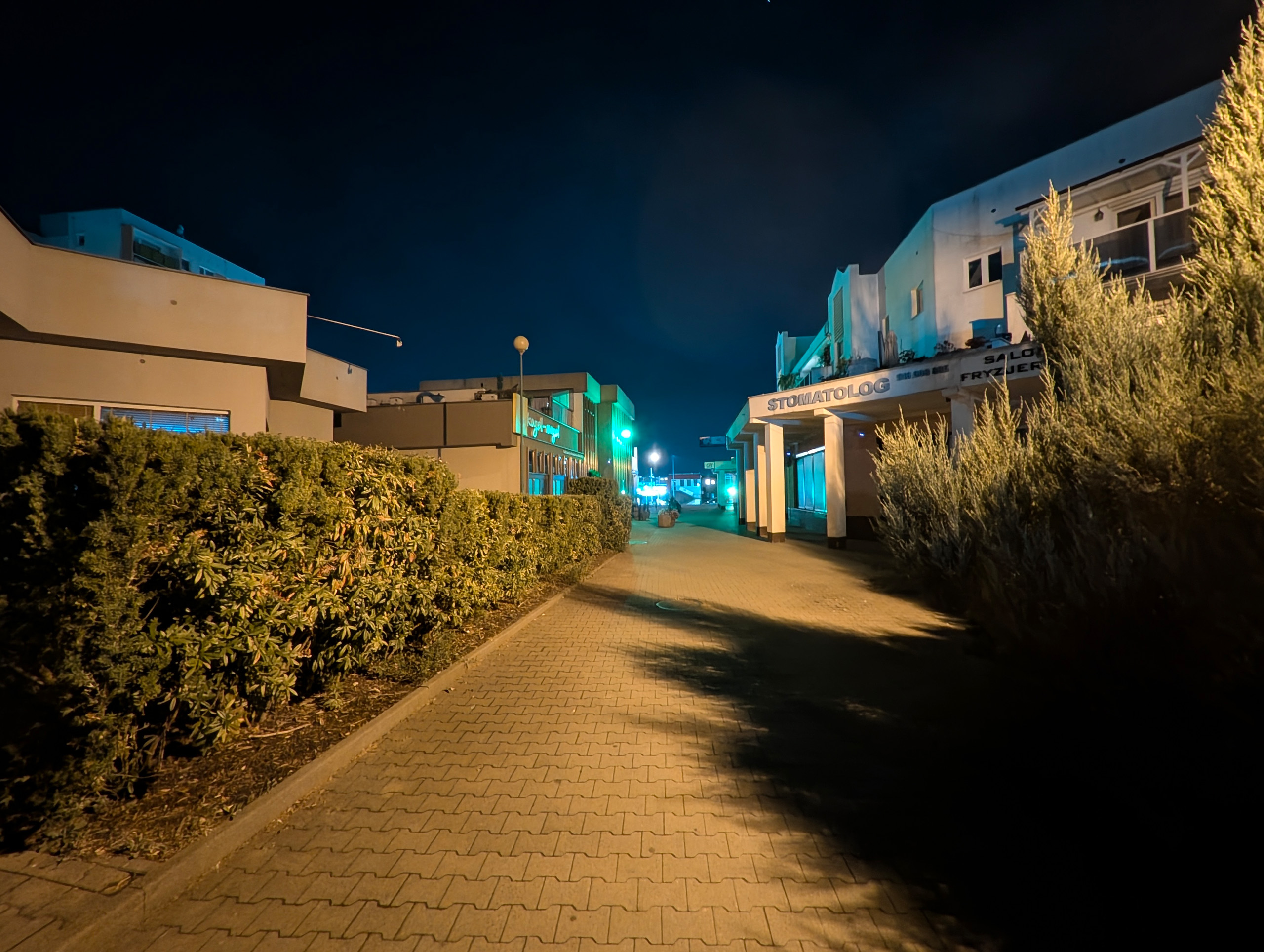 Pixel 10 Pro XL tradycyjnie dobrze sobie radzi w nocy – obraz z głównego aparatu jest naprawdę dobry, z bardzo umiarkowanymi flarami i minimalną ilością artefaktów, nadaje się także do zbliżeń ×2, jeśli jest dosyć światła. Aparat ultraszerokokątny także sobie radzi, choć widać, że obraz jest bardziej intensywnie przetwarzany i ma mniejszą szczegółowość. Najsłabiej wypada w tej kategorii teleobiektyw, który daje niezłe efekty dla bazowego zoomu i akceptowalne dla ×10, pod warunkiem że jest sporo światła. W naprawdę ciemnych sceneriach teleobiektywu lepiej nie używać.