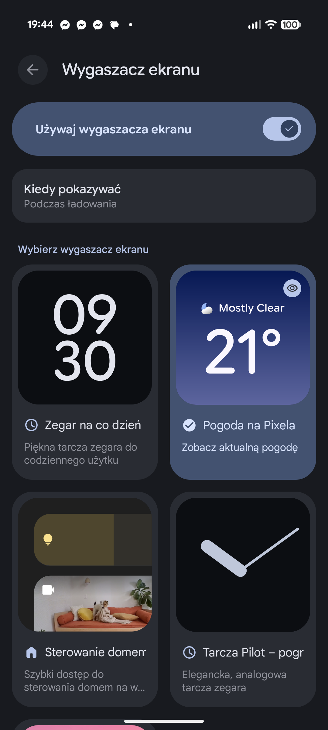 Google Pixel 10 Pro XL ma możliwość pracy z always on display i naprawdę oznacza to „zawsze włączony”. Możliwości dostosowywania AoD są dość umiarkowane – da się wybrać kilka predefiniowanych wariantów wyglądu, sposób prezentacji powiadomień, a ciekawostką jest możliwość automatycznego rozpoznawania przy zablokowanym ekranie, jaka muzyka jest odtwarzana w pobliżu. A ponieważ Pixel 10 Pro XL wyposażony został w mocowanie magnetyczne do ładowarek Qi2/MagSafe, w końcu można sensownie wykorzystać wygaszacz ekranu, ustawiając go do prezentacji dodatkowych informacji po podłączeniu do ładowania – może to być zegar, prezentacja zdjęć, pogoda, a nawet interfejs do sterowania smart home.