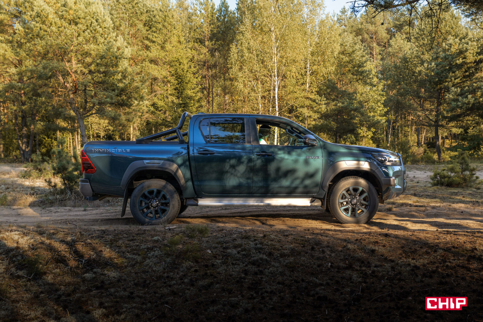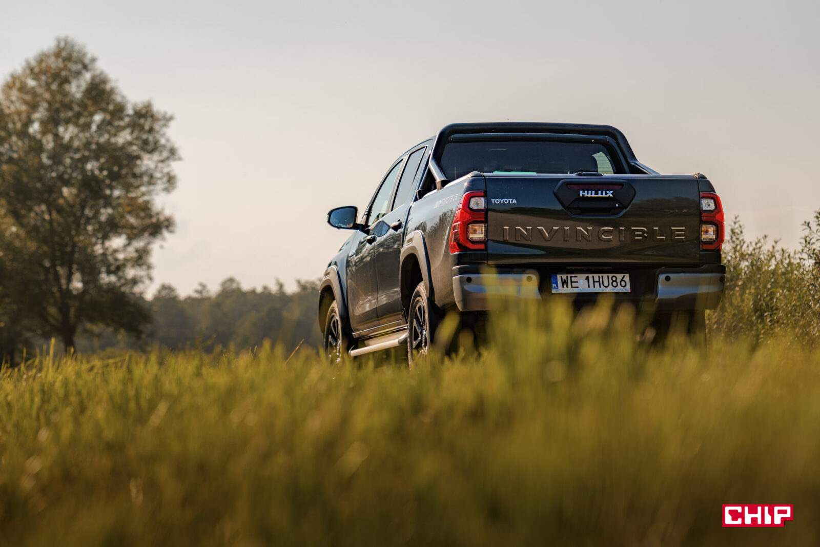 Pickupy, nawet te mniejsze europejskich marek, na ogół straszą na ulicach swoimi wymiarami i agresywnym wyglądem. Toyota Hilux też tak ma, ale głównie w wariancie GR Sport II. Testowany Invincible prezentuje się zaskakująco kulturalnie i wpływ na to ma kilka elementów.