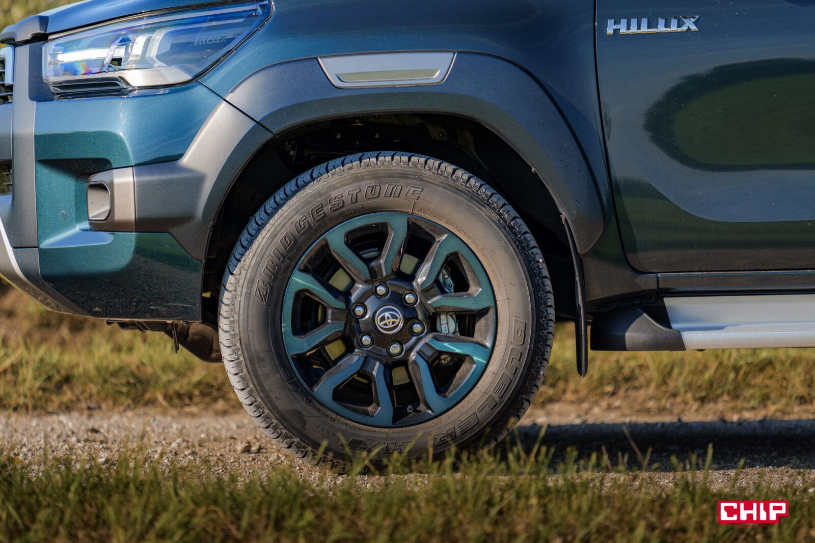 A już całkiem niezwykle kulturalnie Hilux wygląda z tyłu. Prosty, wysoko zawieszony, wydaje się wręcz troszkę zbyt szczupły, jak na swoje wymiary. A te są naprawdę konkretne, bo auto ma 5325 mm długości, 1900 mm szerokości (2020 mm w GR Sport II) i 1860 mm wysokości. Do tego 310 mm prześwitu i 3085 mm rozstawu osi. Kawał samochodu!