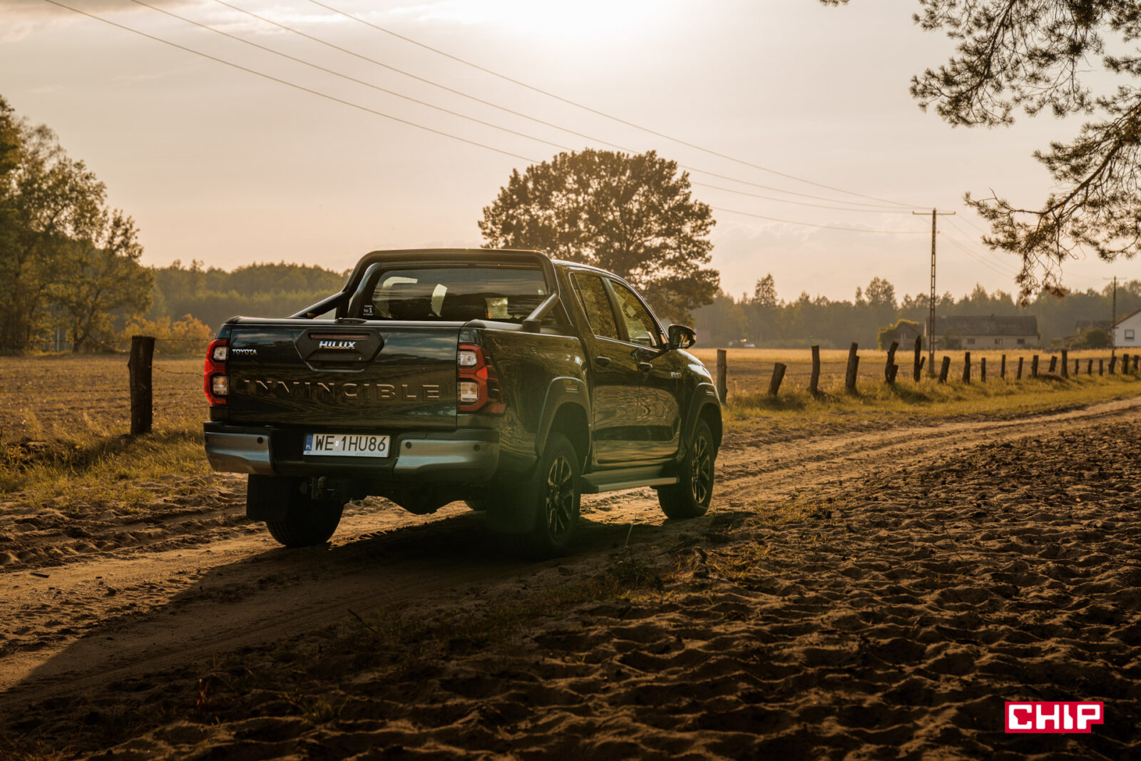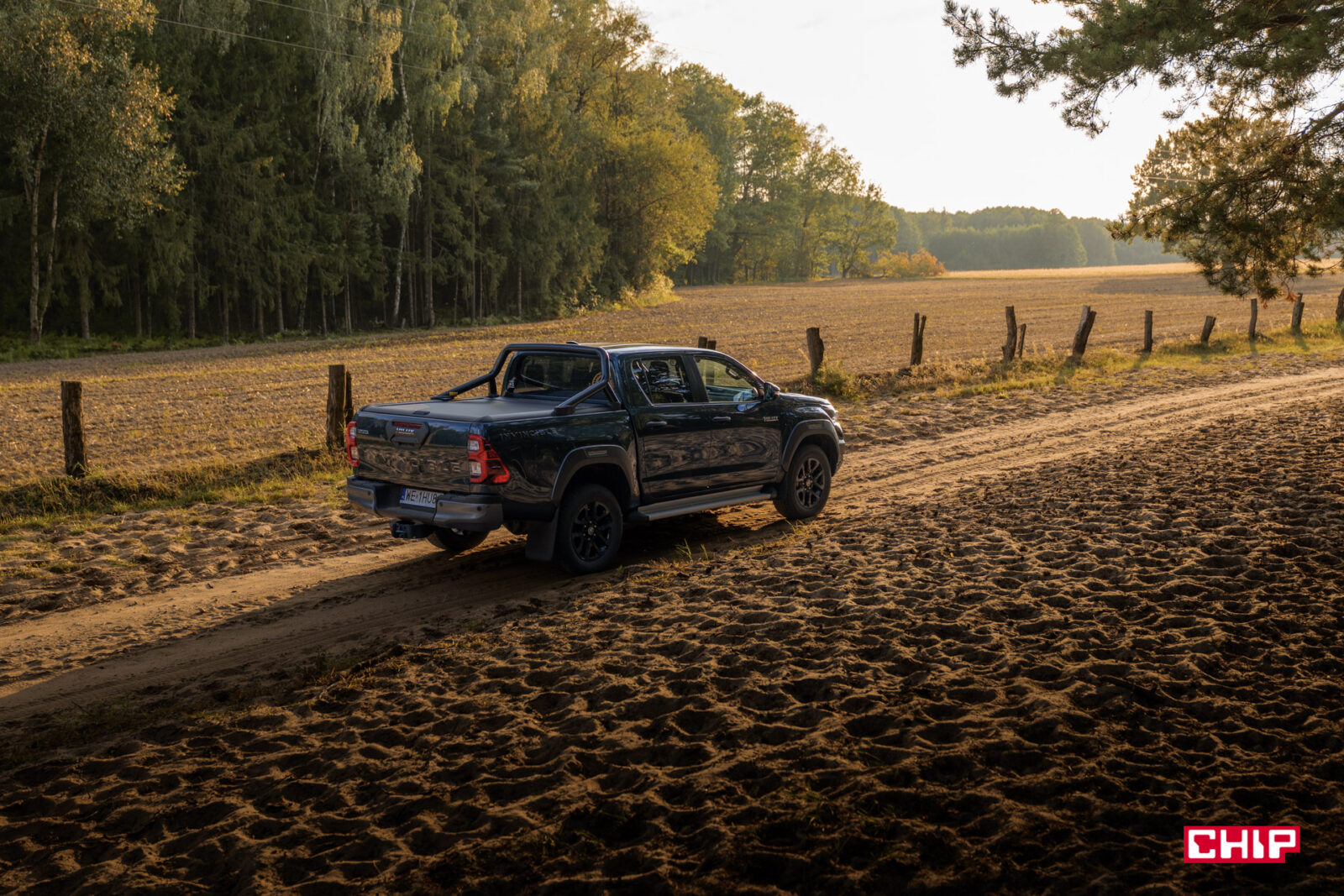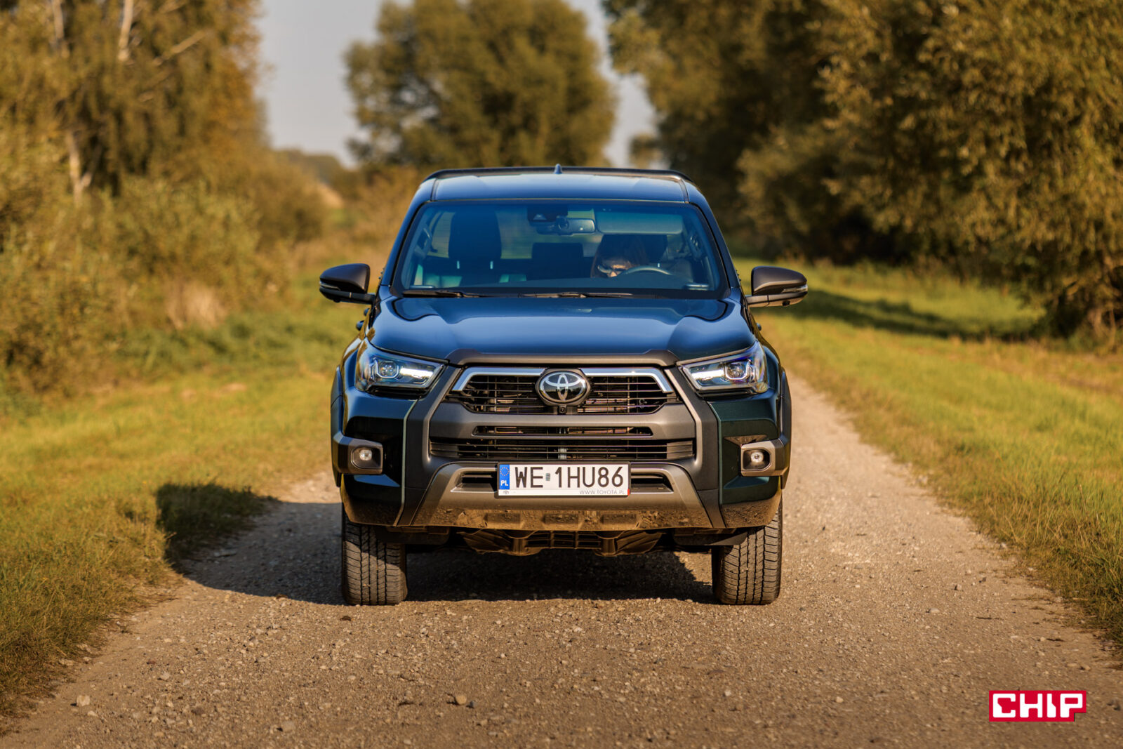 W trasie jest bajecznie, o ile nie przeszkadza Wam jego stateczne przyspieszanie. Poza rzeczami oczywistymi takimi jak świetna widoczność i komfortowe zawieszenie, Hilux ma prezencję odstraszającą niewydarzonych szeryfów drogi, którzy lubią bez powodu okupować lewy pas, czy wcinać się pod samą maskę podczas wyprzedzania. Dodatkowo już w standardzie macie inteligentny tempomat adaptacyjny, wspomniane połączenie z Apple CarPlay i Androidem Auto, już od drugiej wersji wyposażenia jest dwustrefowa automatyczna klimatyzacja, czy podgrzewane przednie fotele. Można tym jechać w daleką podróż w komforcie, z wszelkimi udogodnieniami XXI wieku, w dodatku mając świadomość, że w razie konieczności szalonych objazdów możecie tym autem iść jak burza przez pola, lasy, czy wszelakiej maści mokradła.