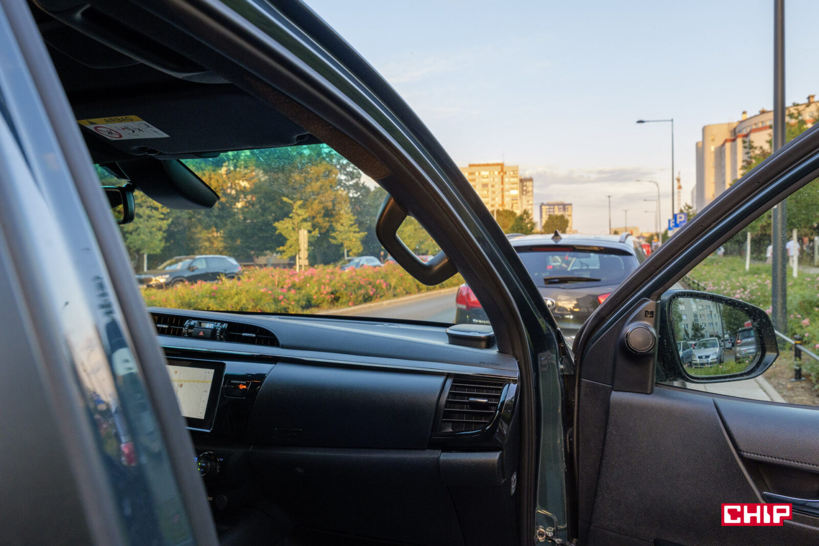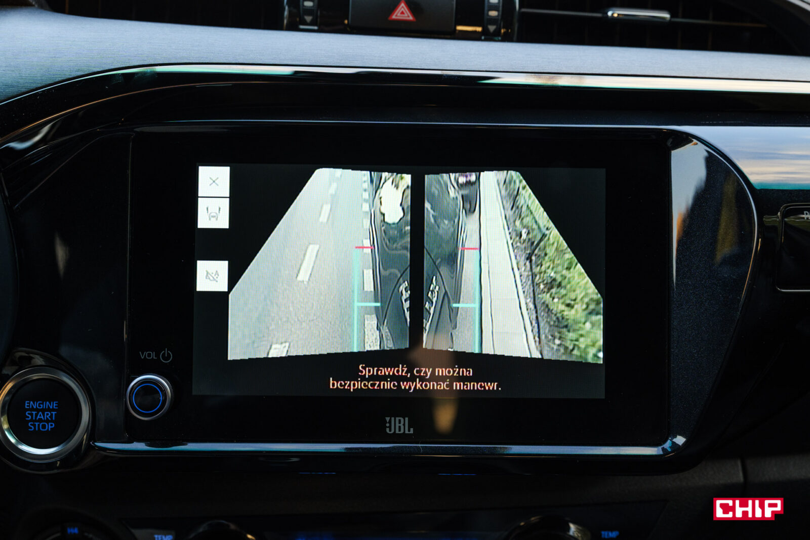 Jedyne, czego mi brakowało, to system monitorujący martwe pole pojazdu. Widoczność w Hiluxie jest świetna, jasne, ale tak jak każde inne auto, ma on martwe pola i fajnie byłoby mieć opcję dokupienia tego systemu, szczególnie jeżeli często będziecie poruszać się po mieście. A skoro już o mieście mowa, spodziewałam się większych przebojów. Jasne, unikałam podziemnych parkingów w galeriach handlowych, bo zazwyczaj mają one limit wysokości 1,9 metra, a nasz pickup ma 1,88 m, więc nie czułam się zbyt komfortowo. Więcej czasu zajmowało mi też znajdowanie miejsc parkingowych, w których Hilux by się zmieścił. O ile jego szerokość nie stanowiła problemu, długość ponad 5,3m wymuszała rozważne dobieranie miejsc do zaparkowania. Kiedy już znajdowałam odpowiednio długie miejsce, auto pozwalało na sprawne manewrowanie, głównie dzięki kamerze cofania, którą macie już w standardzie. Wraz z najdroższą wersją wyposażenia dostajemy system kamer 360°, jednak jeżeli nie mieszkacie w zatłoczonej metropolii, nie jest on niezbędny.