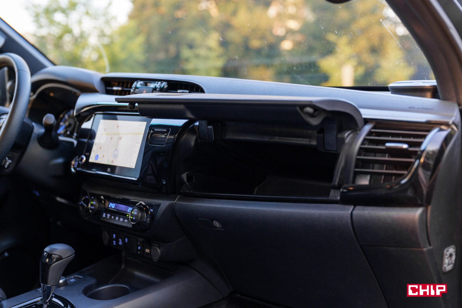 Terenowe auto musi być praktyczne i Toyota Hilux ma bardzo praktyczne wnętrze. Ale parę elementów wygląda nieco dziwnie