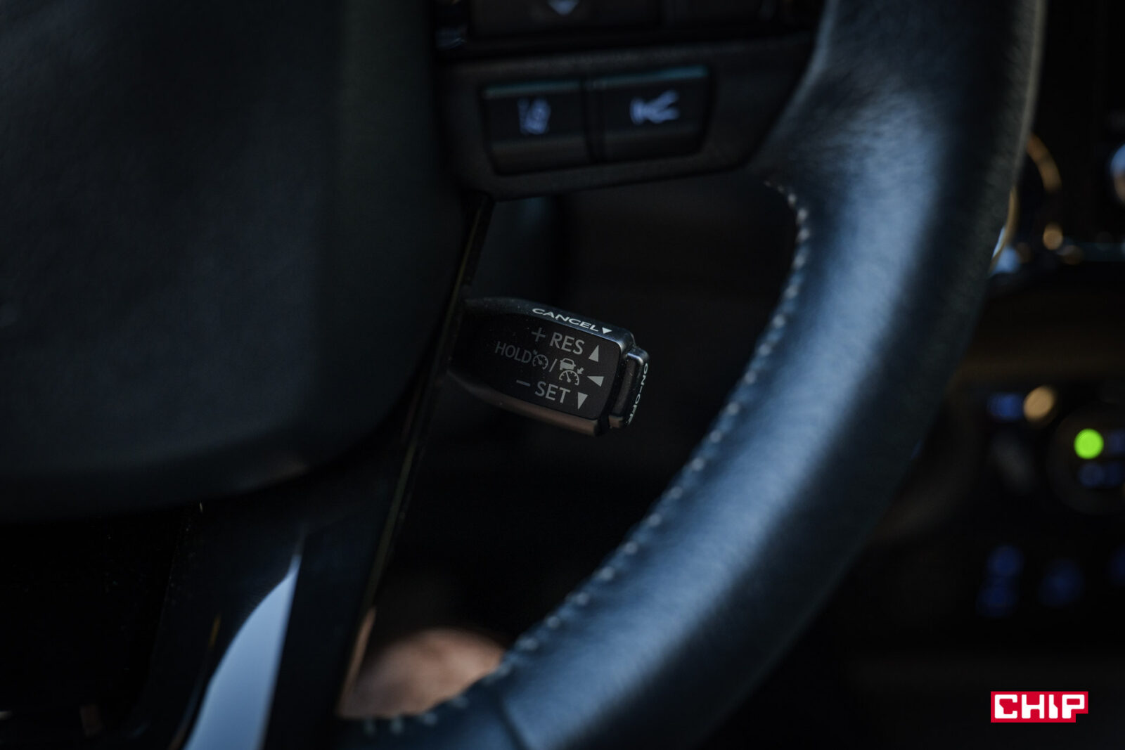 Jeśli chodzi o rzeczy dziwne, to bardzo nietypowe są głośniki na szczycie deski rozdzielczej czy bardzo amerykański lewarek skrzyni biegów. Nieco dziwnie wyglądają też niektóre przyciski, jak choćby te do sterowania podgrzewaniem foteli, ale o tym jeszcze sobie za moment porozmawiamy.