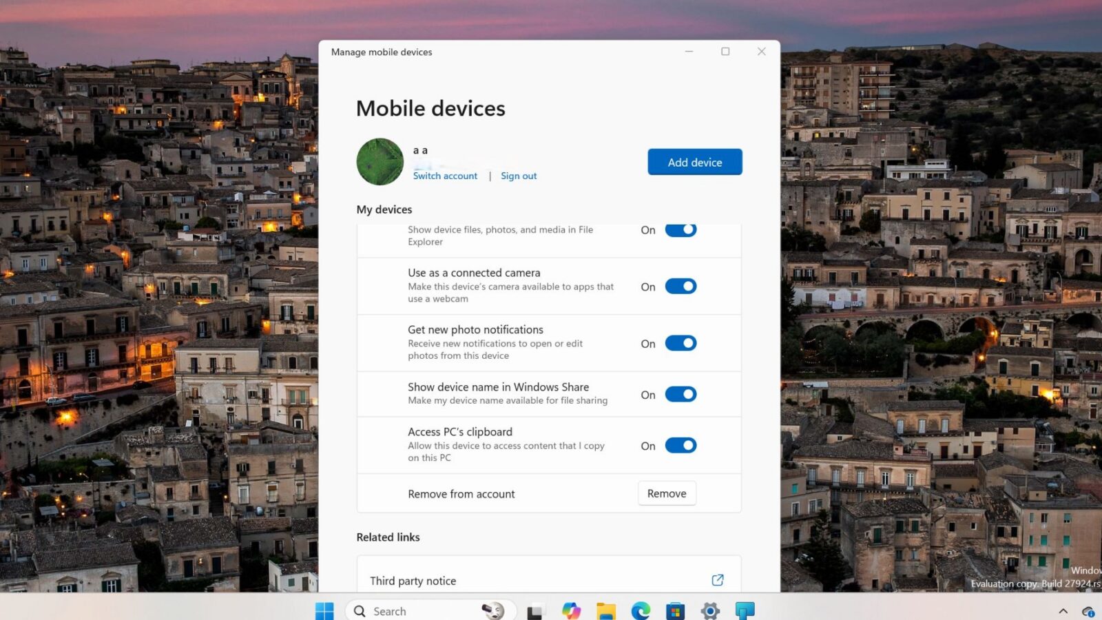 Aby uruchomić testowy międzysystemowy dostęp do schowka, trzeba przede wszystkim dysponować odpowiednią kompilacją systemu. Na urządzeniu z Androidem musi być zainstalowana aplikacja Łącze do Windows i rzecz jasna smartfon i komputer należy ze sobą połączyć w parę, pracującą na tym samym koncie Microsoft.