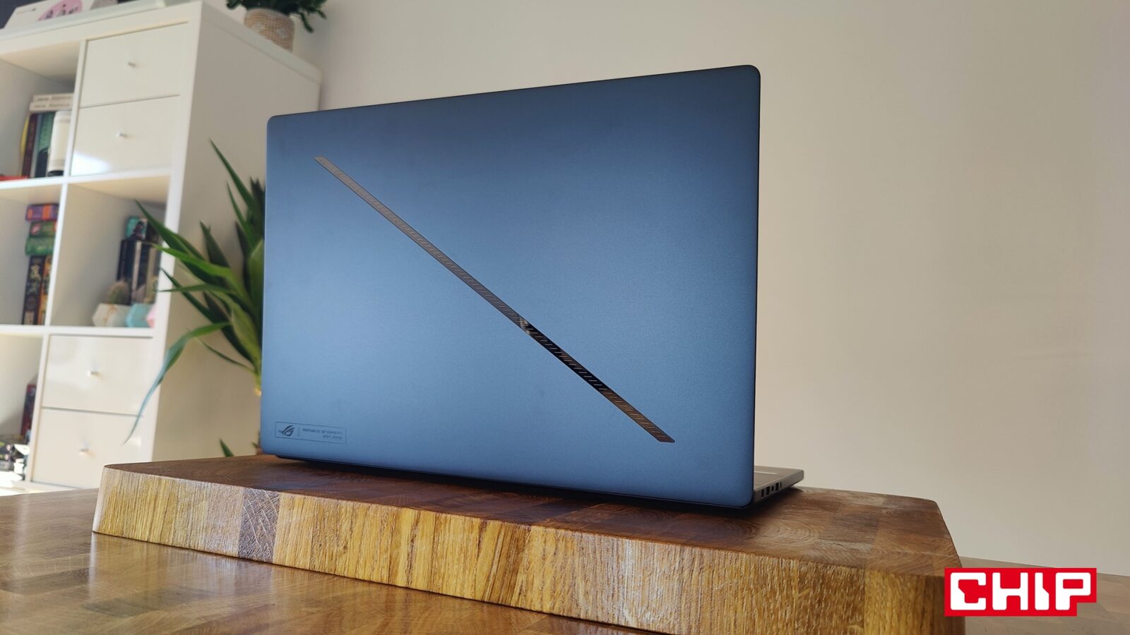 Sam komputer to zaskakująco zgrabna i gustowna konstrukcja. Warto tu podkreślić, że mamy do czynienia z komputerem gamingowym, a więc docelowo przeznaczonym dla graczy. Wbrew konwencji jednak (na szczęście) producent nie wyposażył komputera w krzykliwe akcenty gamingowe, które w większości przypadków przypominają mi diody LED umieszczane w latach dziewięćdziesiątych ubiegłego wieku na głośnikach magnetofonów typu „jamnik”. Jedynym charakterystycznym akcentem na obudowie jest biegnący po przekątnej obudowy ekranu pasek LED oraz delikatne logo „Republic of Gamers”, które naprawdę nie rzuca się w oczy. Dzięki temu komputer sprawdzi się praktycznie w każdym otoczeniu, nawet w biurze.